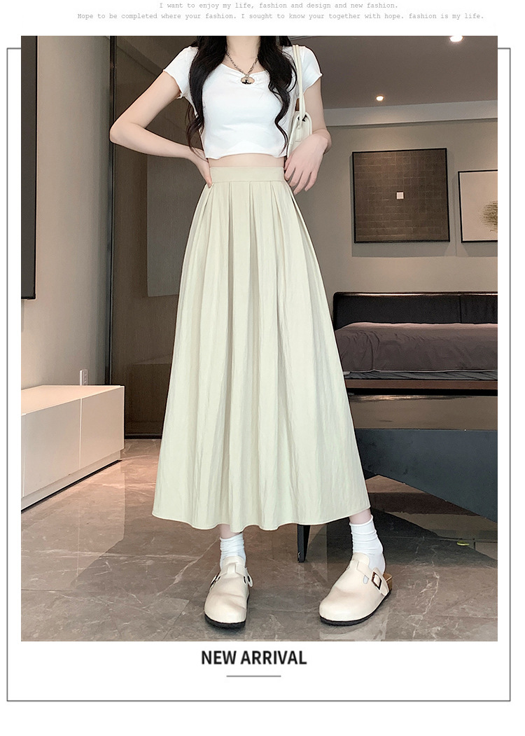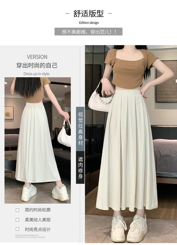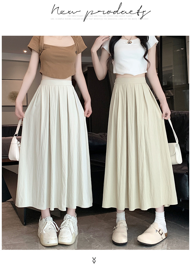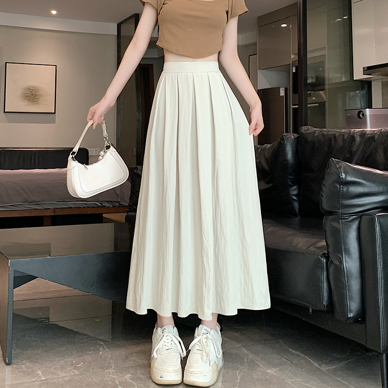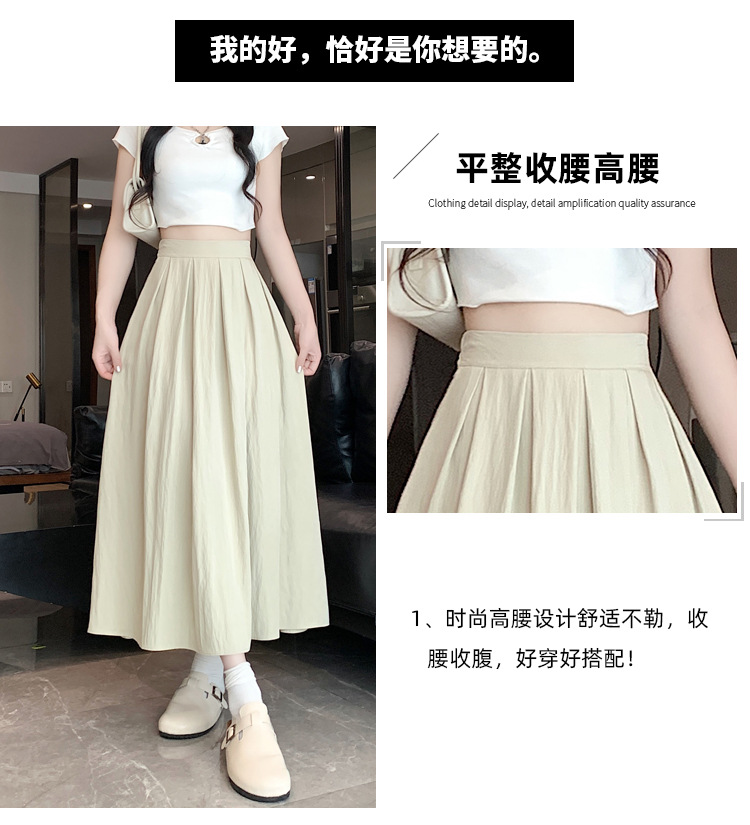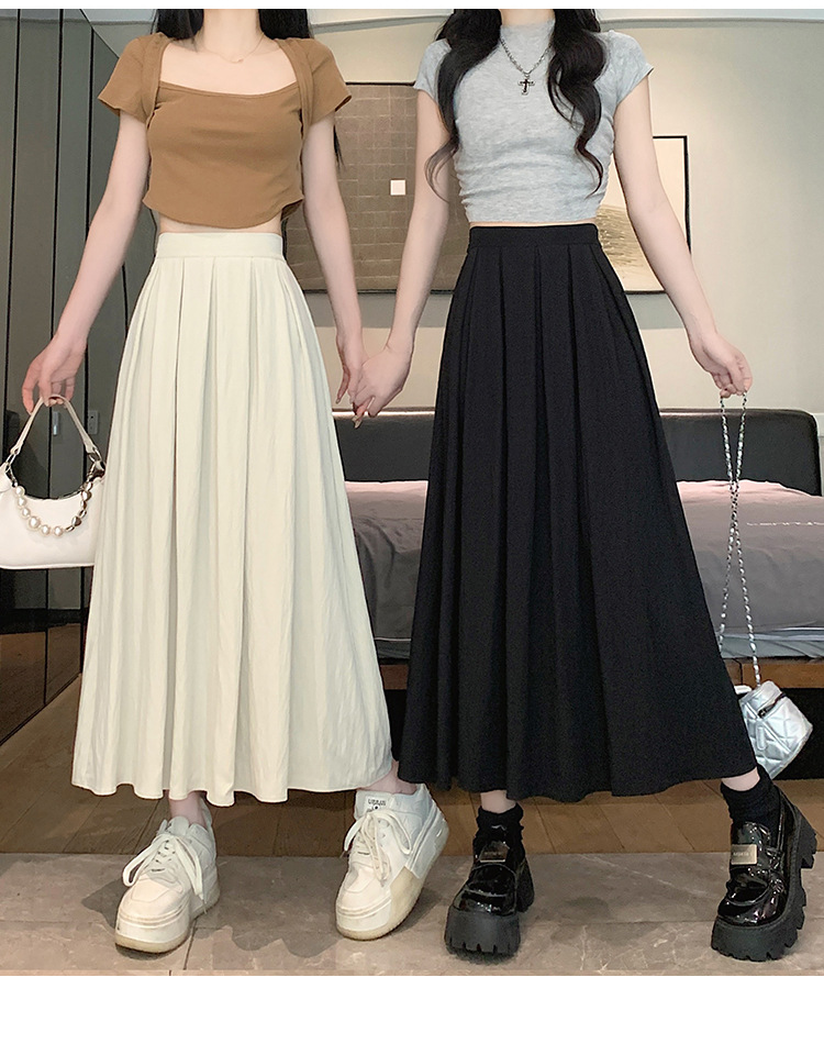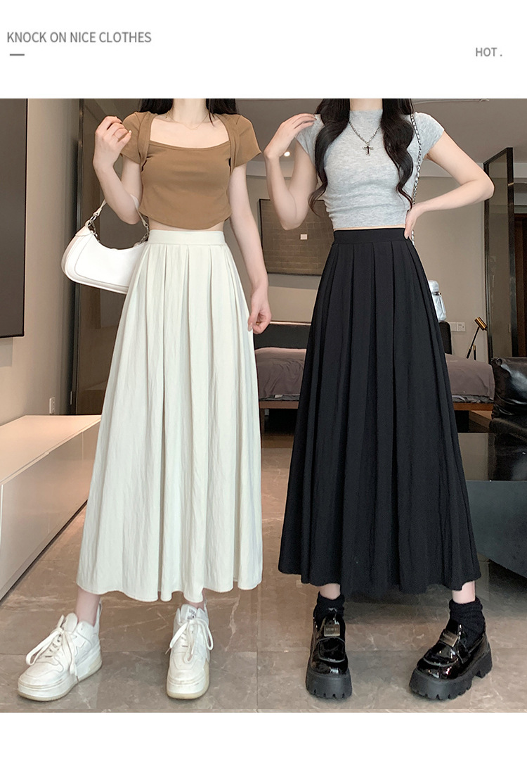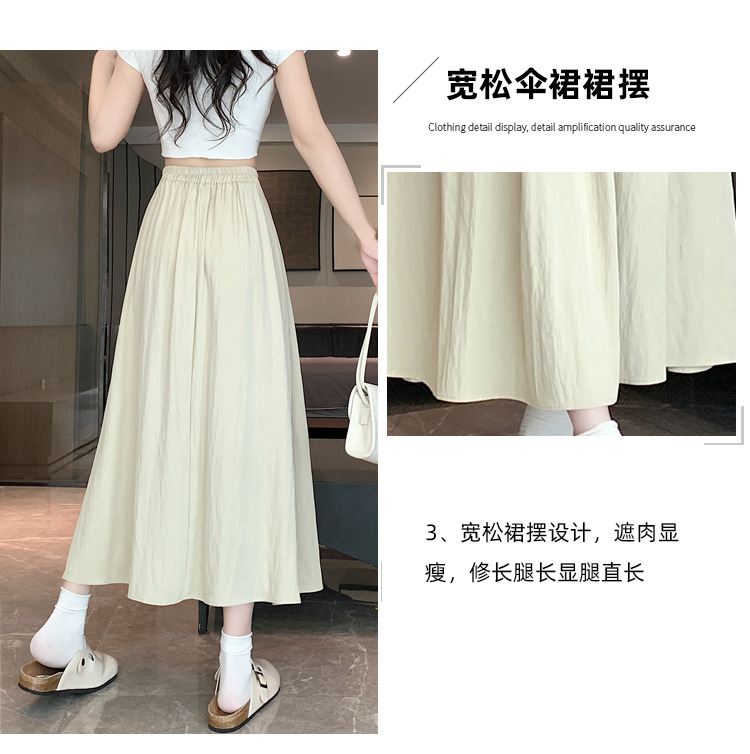 검은 색 중간 길이 스커트 여성 봄과 여름 새로운 탄성 높은 허리 슬리밍 드레이핑 대형 주름 우산 스커트 도매스토어 가기