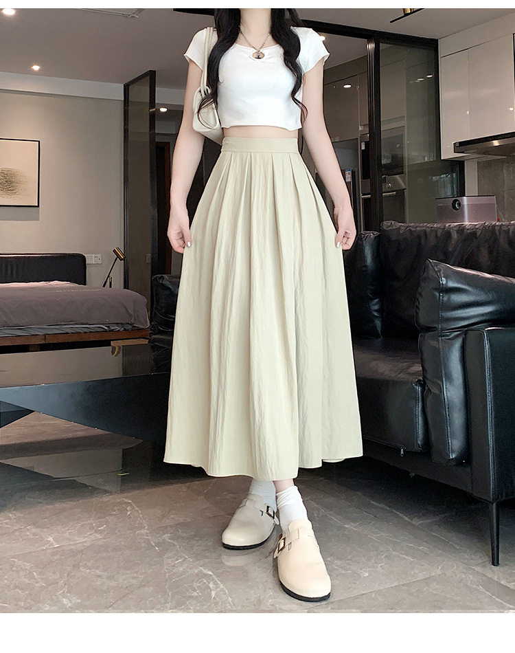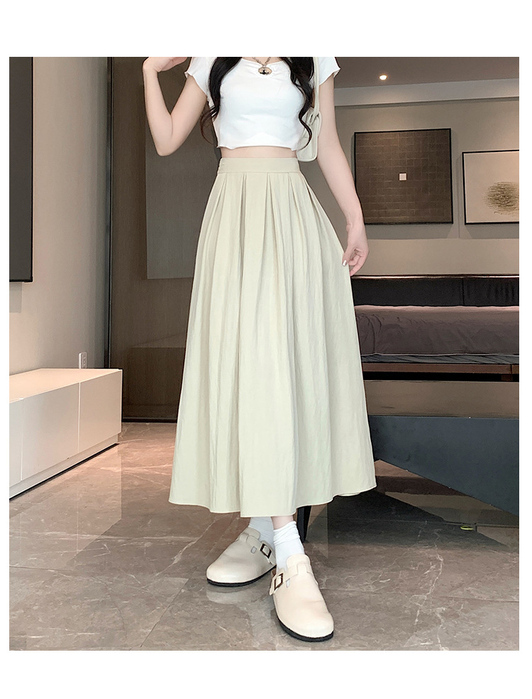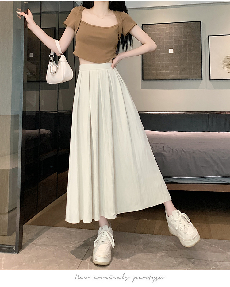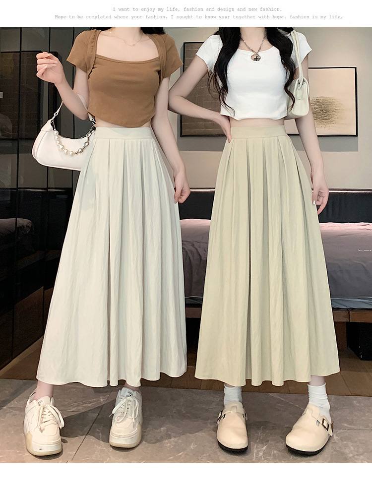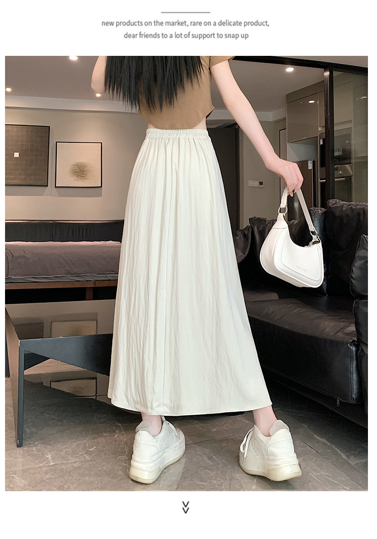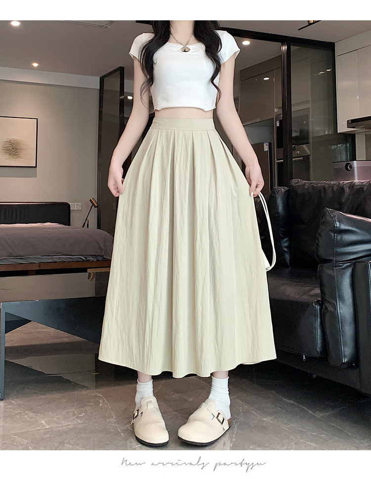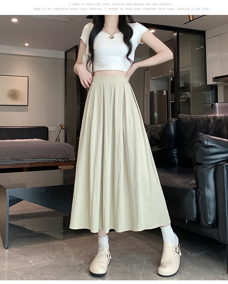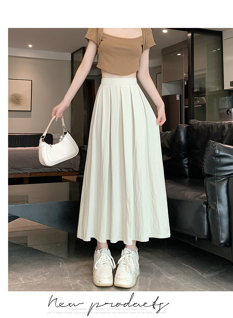 검은 색 중간 길이 스커트 여성 봄과 여름 새로운 탄성 높은 허리 슬리밍 드레이핑 대형 주름 우산 스커트 도매스토어 가기