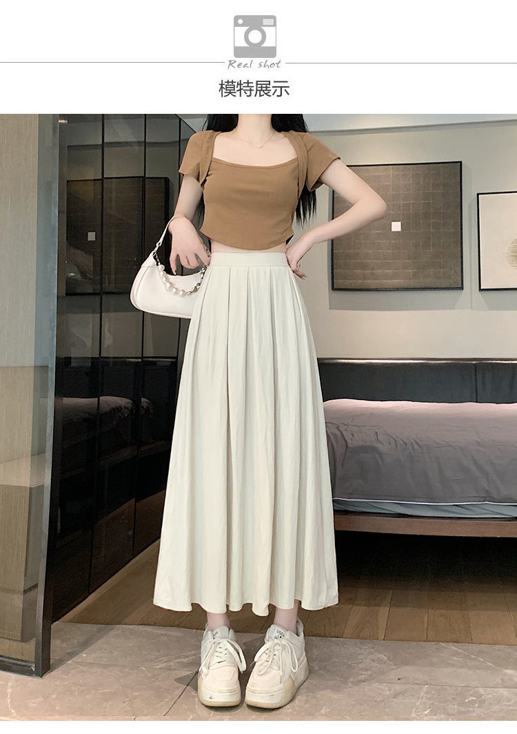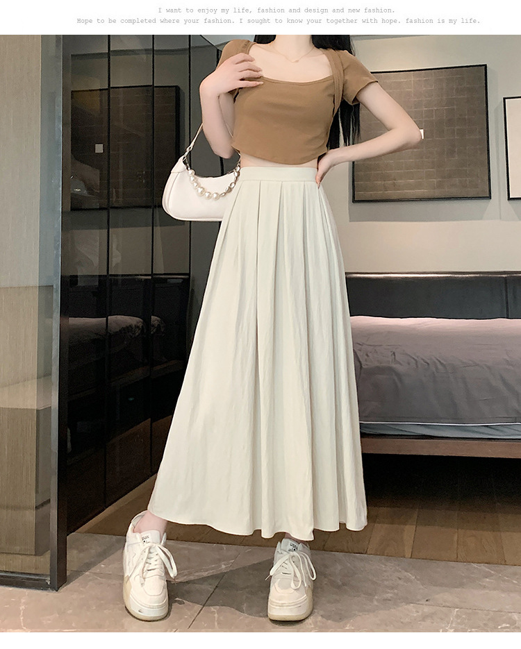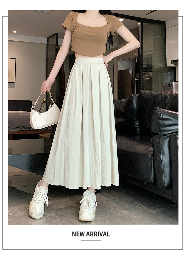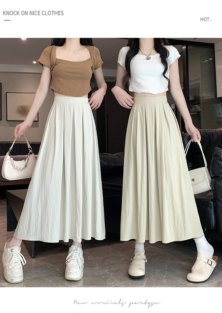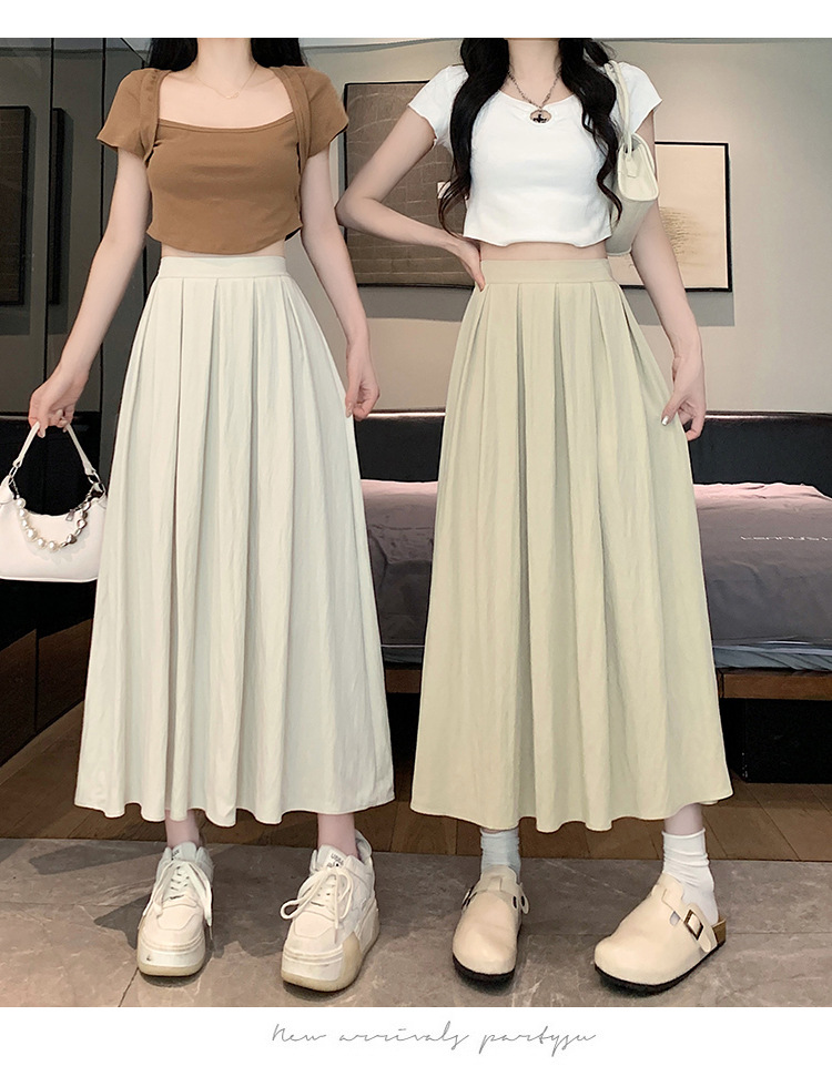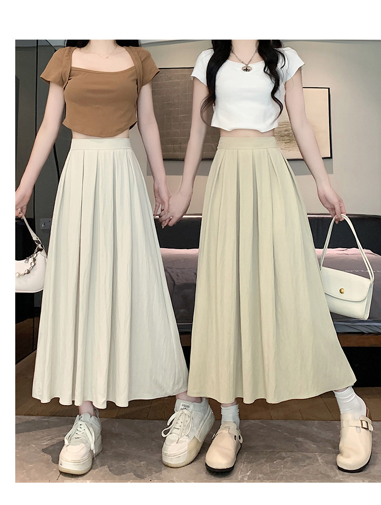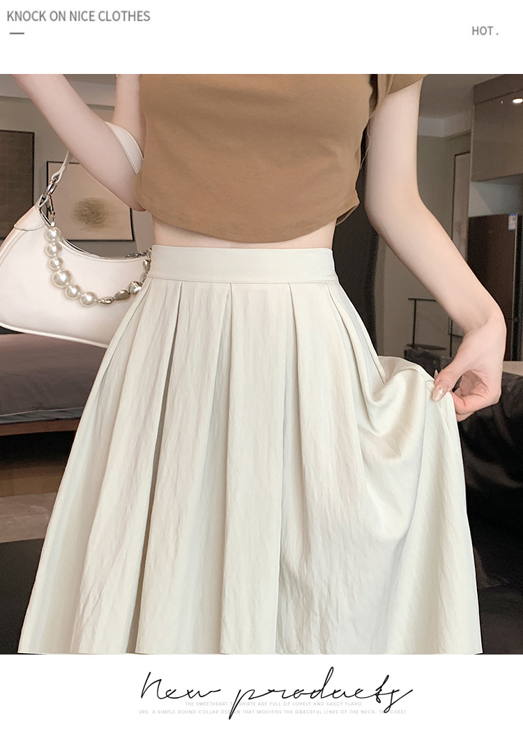 검은 색 중간 길이 스커트 여성 봄과 여름 새로운 탄성 높은 허리 슬리밍 드레이핑 대형 주름 우산 스커트 도매스토어 가기
