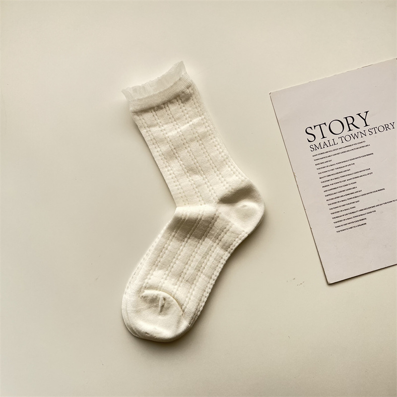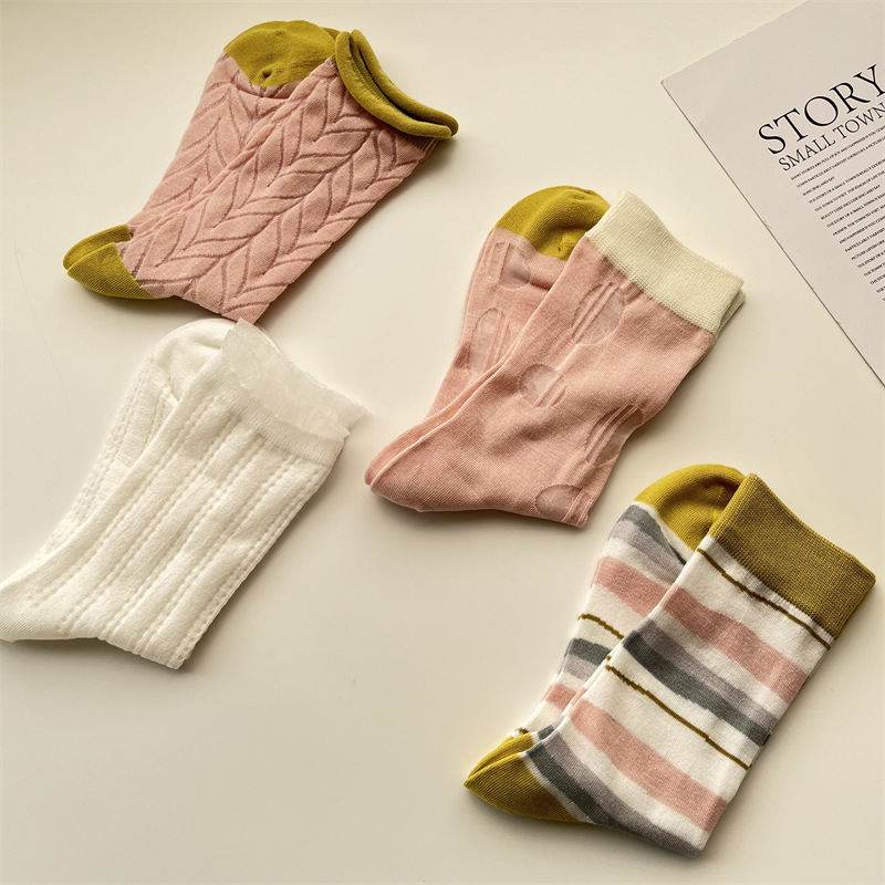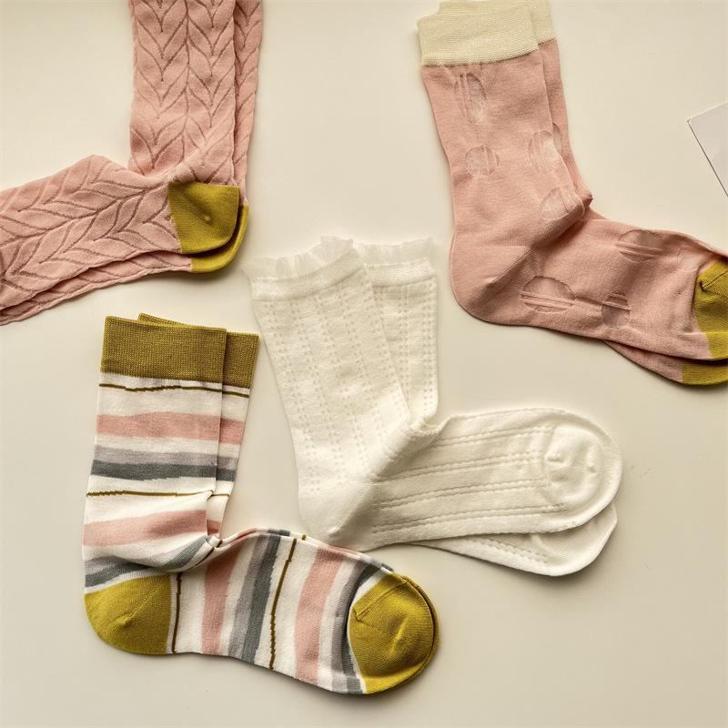 봄과 여름 핑크 얇은 중공 대형 라운드 양말 여성의 일본 복고풍 줄무늬 중반 종아리 양말 컬링 메쉬 여성용 양말스토어 가기
