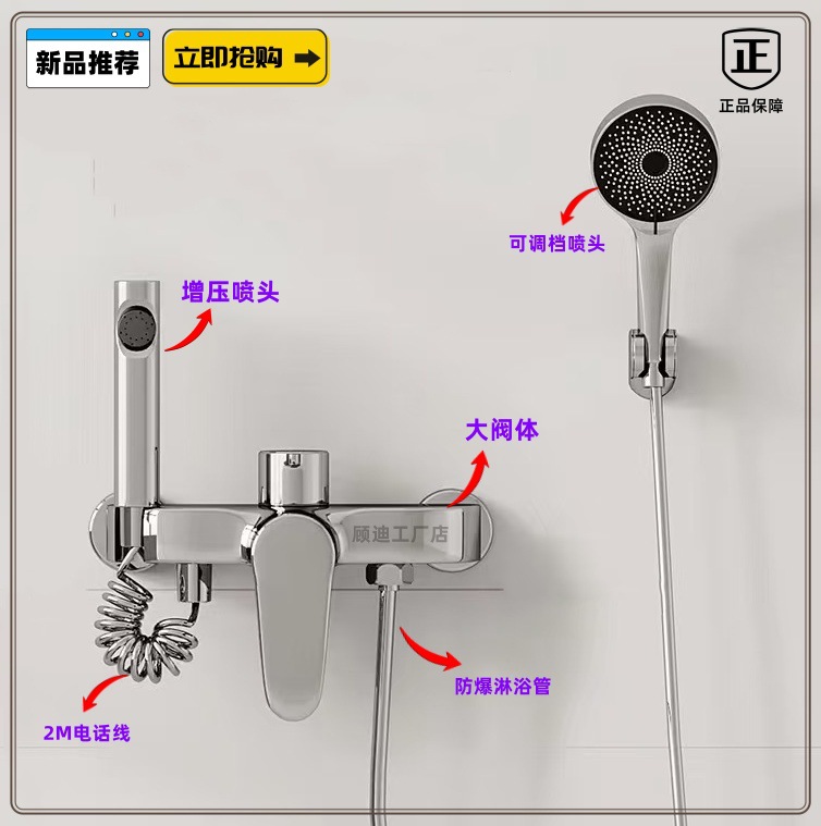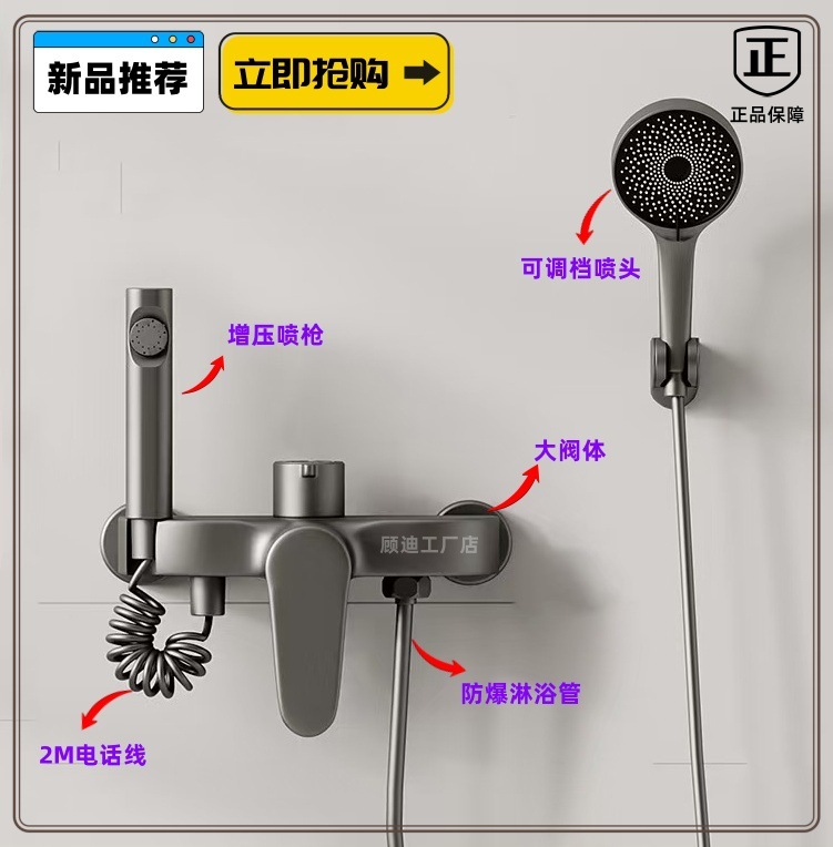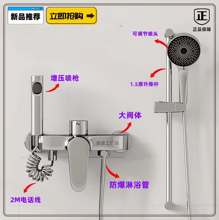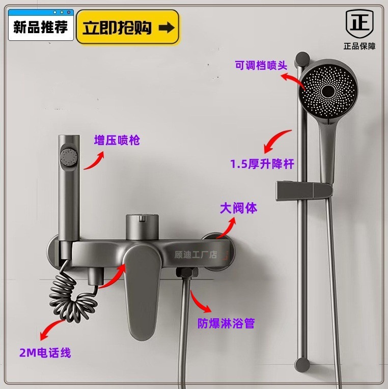 • [전기도금 고급 리프팅 샤워기] 대형 밸브 본체 + 1.5 두께의 막대 + 2m 전화선