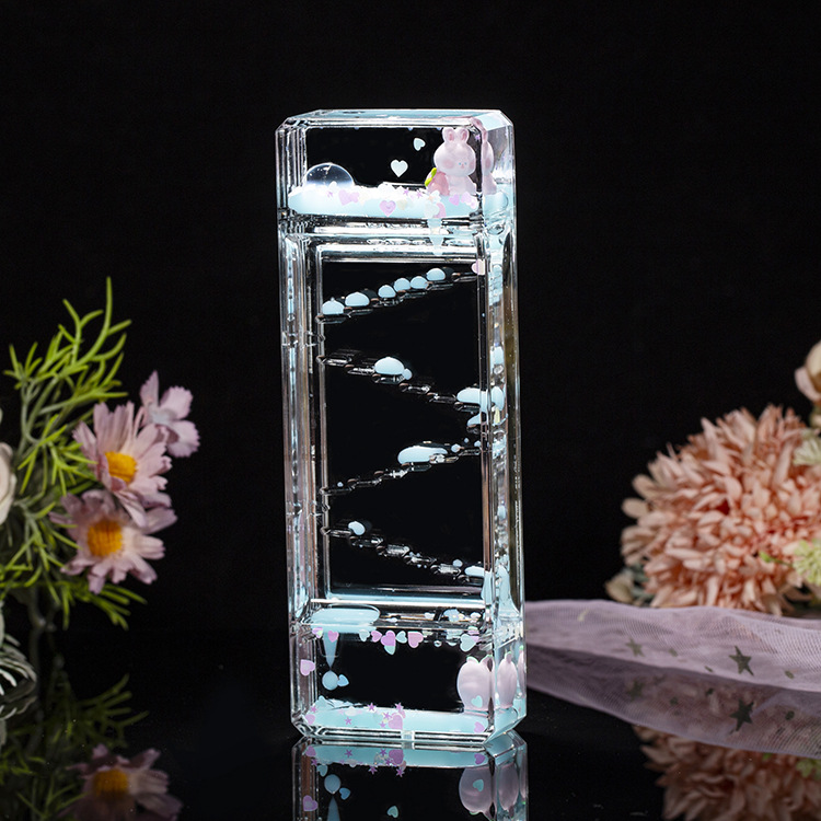 Douyin 같은 스타일 복숭아 토끼 슬라이드 오일 드롭 직사각형 만화 모래 시계 어린이 장난감 플로트 액체 데스크탑 장식스토어 가기