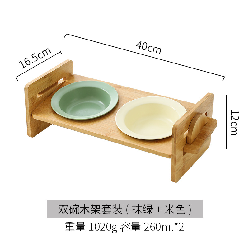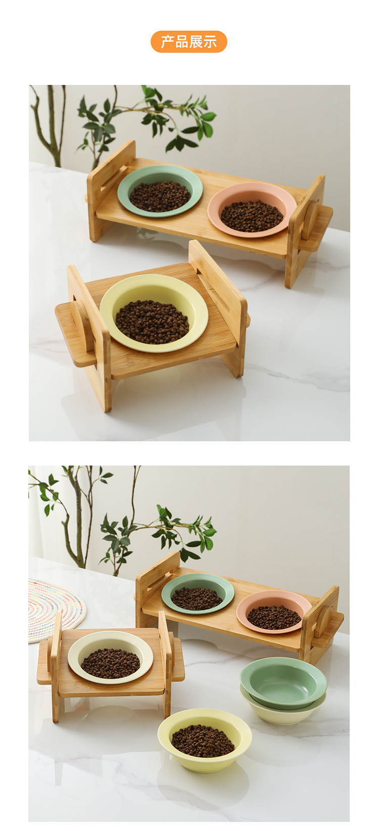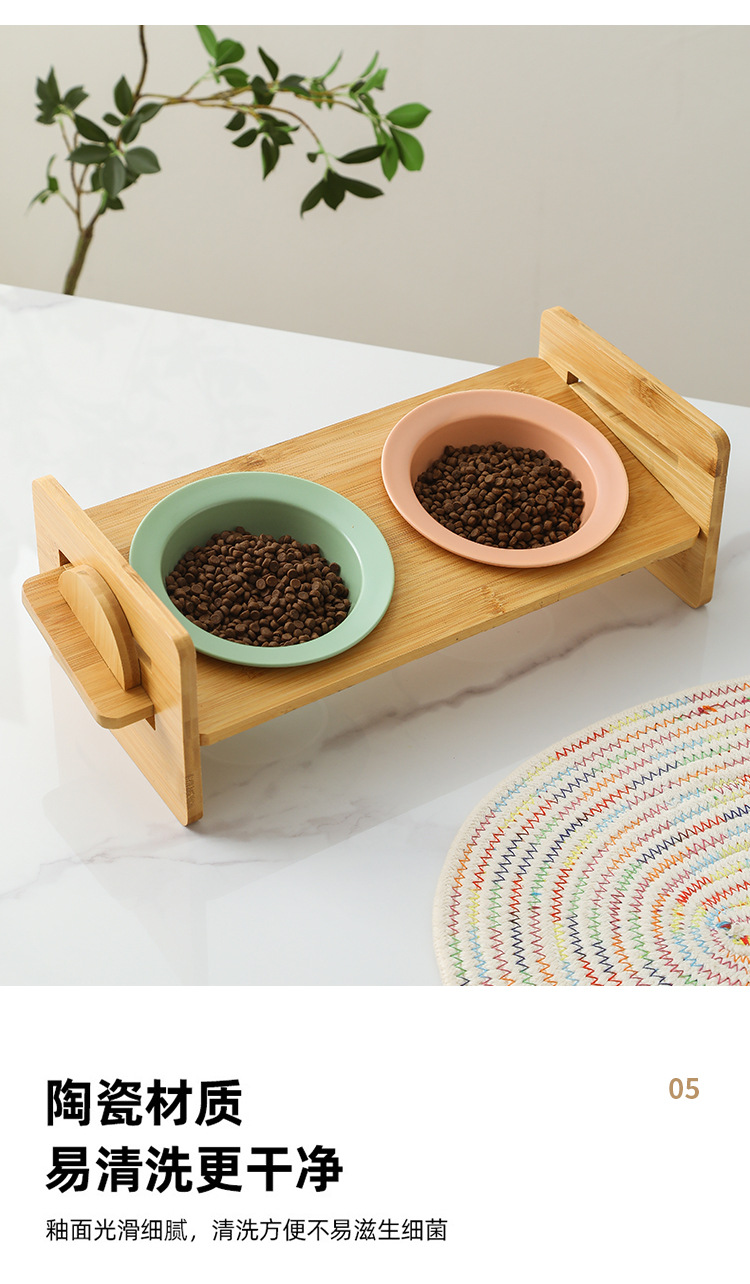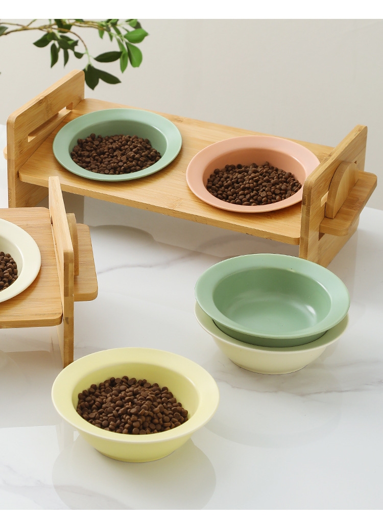 세라믹 그릇 고양이와 개 그릇 고양이 먹이 그릇 그릇 비스듬한 입 대나무 랙 마시는 그릇 더블 그릇 보호 자궁 경부 그릇 높은 애완 동물 그릇스토어 가기