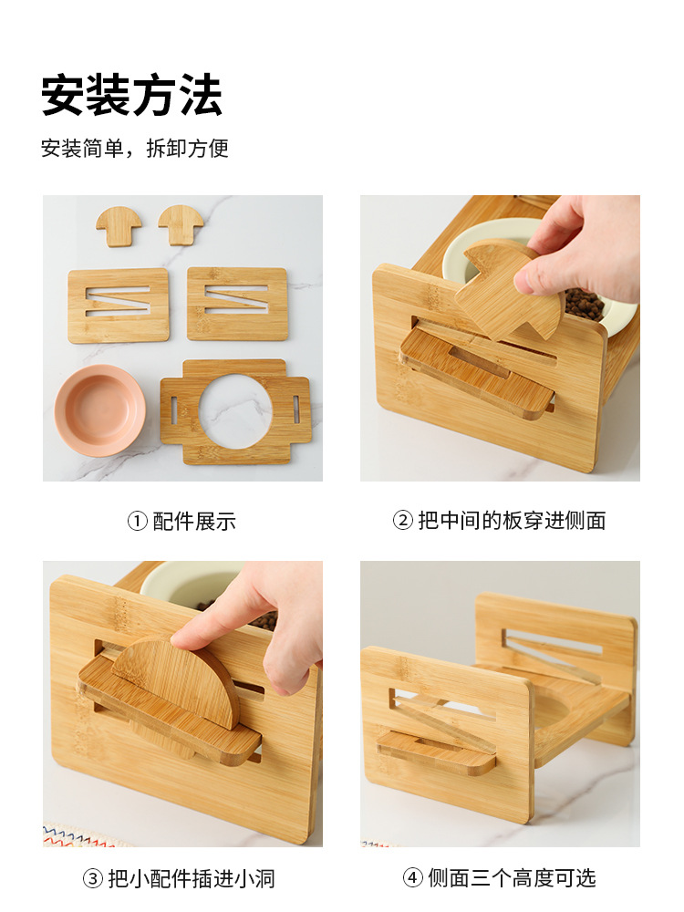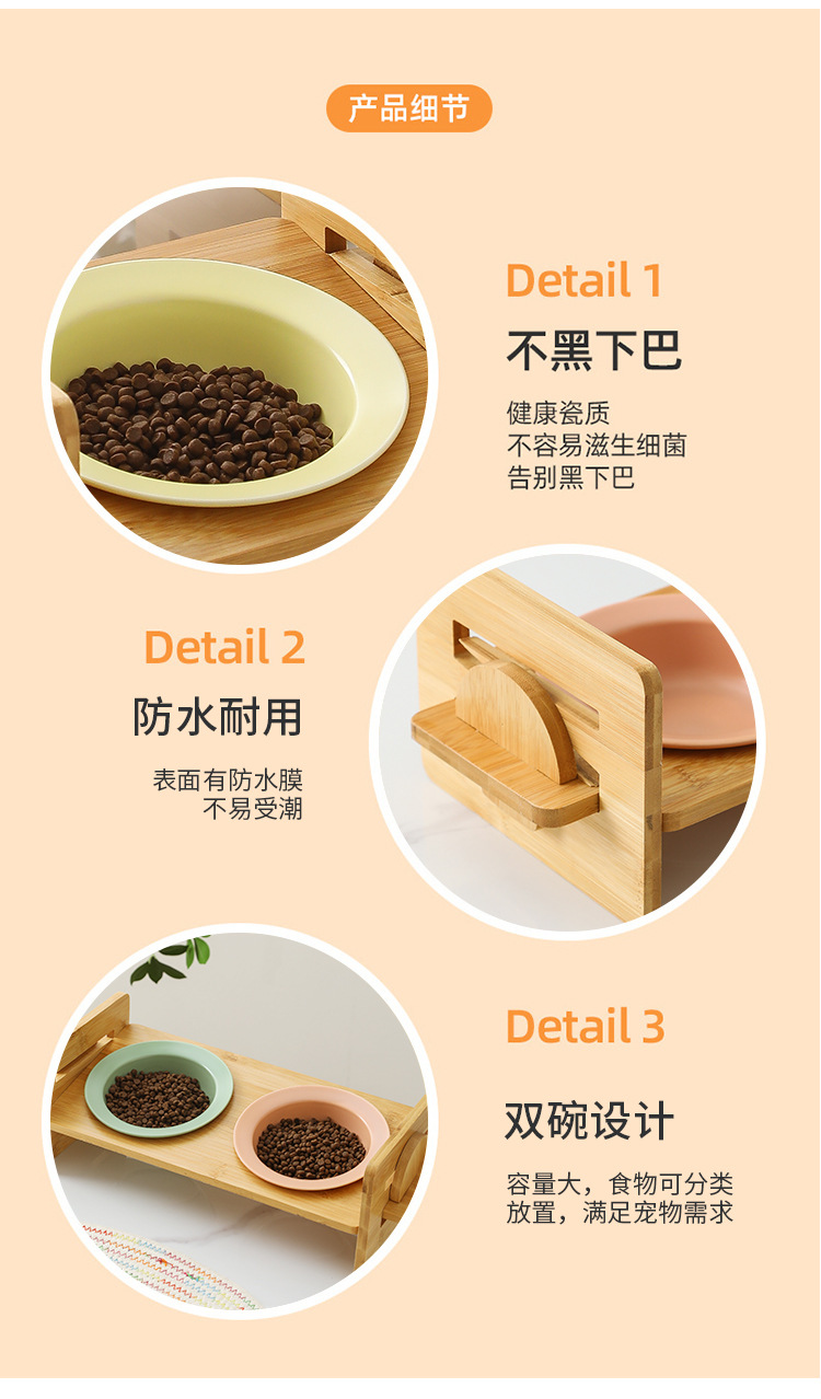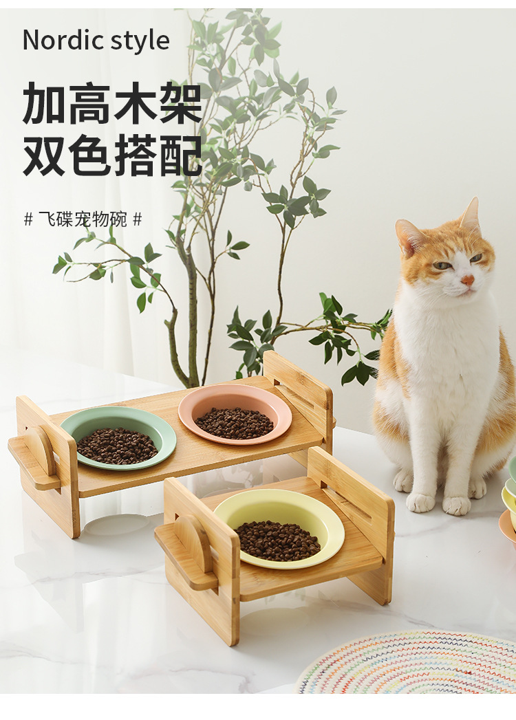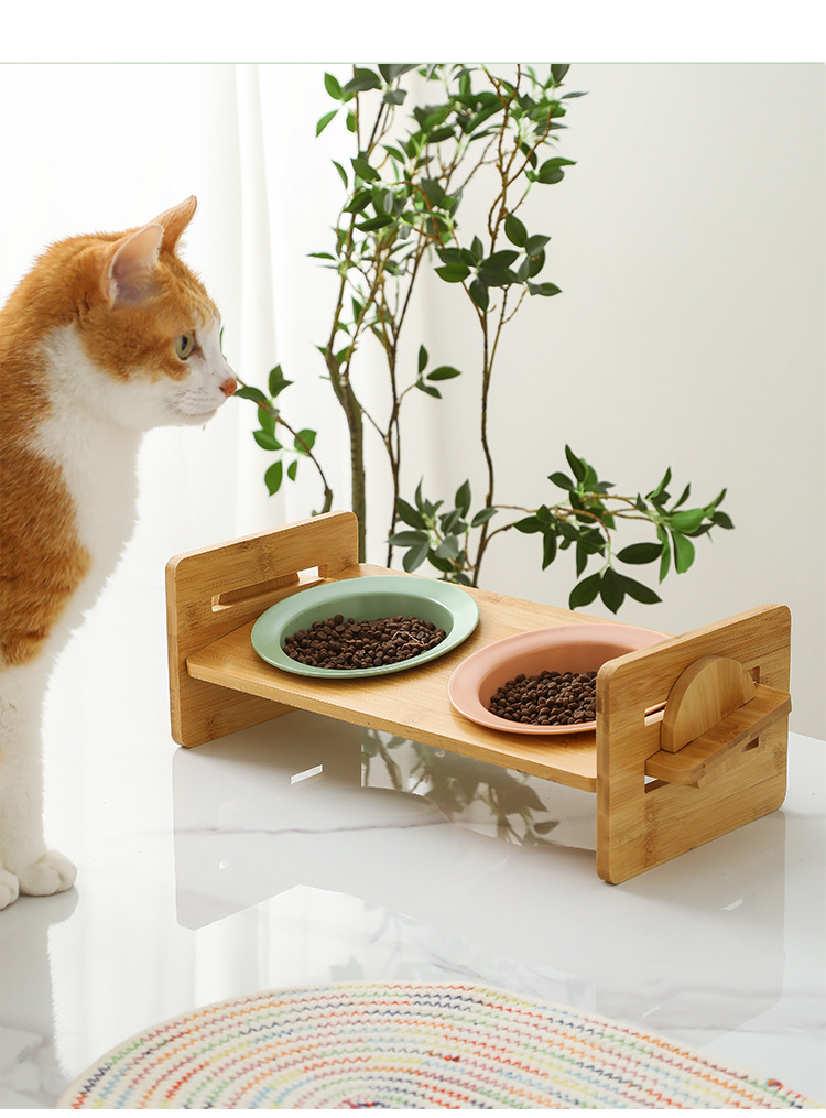 세라믹 그릇 고양이와 개 그릇 고양이 먹이 그릇 그릇 비스듬한 입 대나무 랙 마시는 그릇 더블 그릇 보호 자궁 경부 그릇 높은 애완 동물 그릇스토어 가기