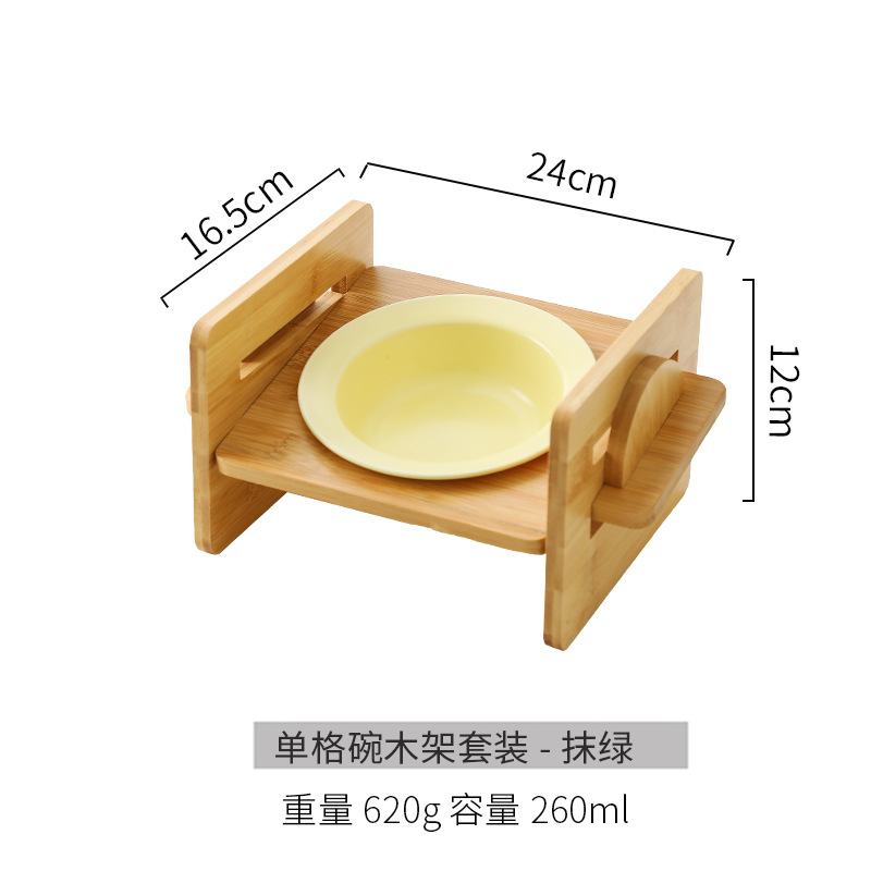 • 더블 보울과 더블 조립 나무 프레임 세트-(녹색 우유 노란색)