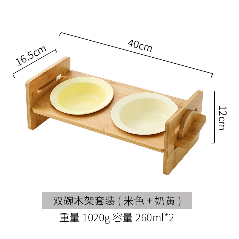 • 더블 그릇과 더블 조립 나무 프레임 세트-(베이지 색 우유 노란색)