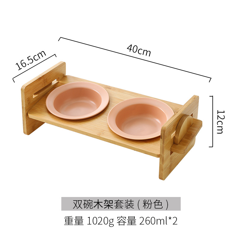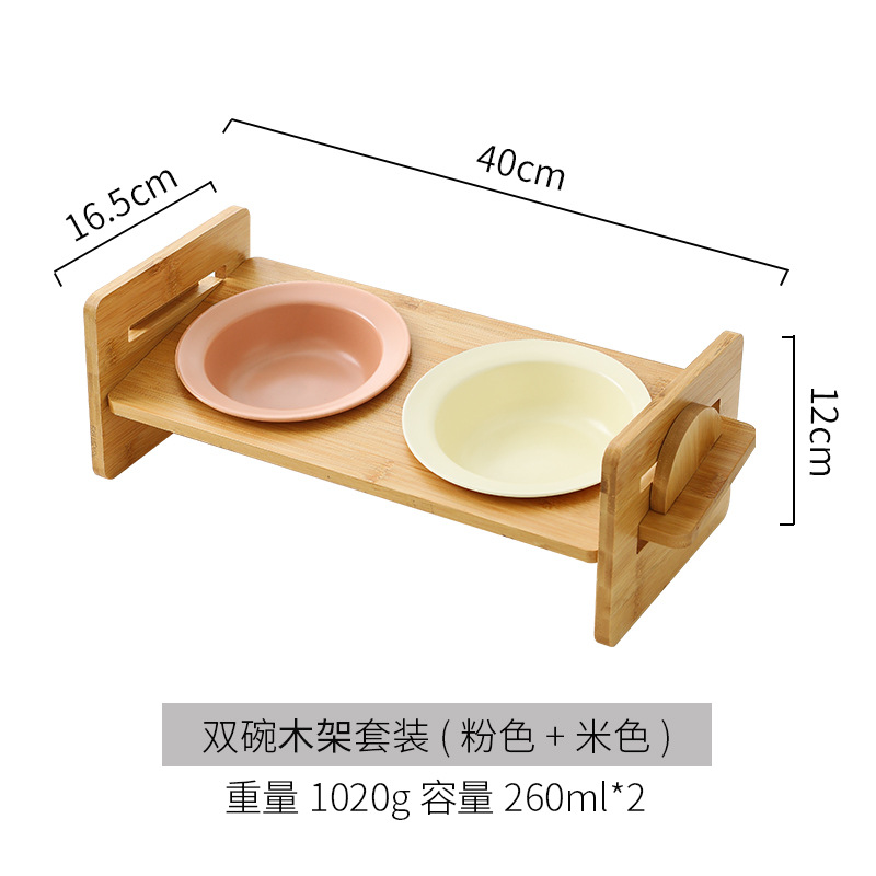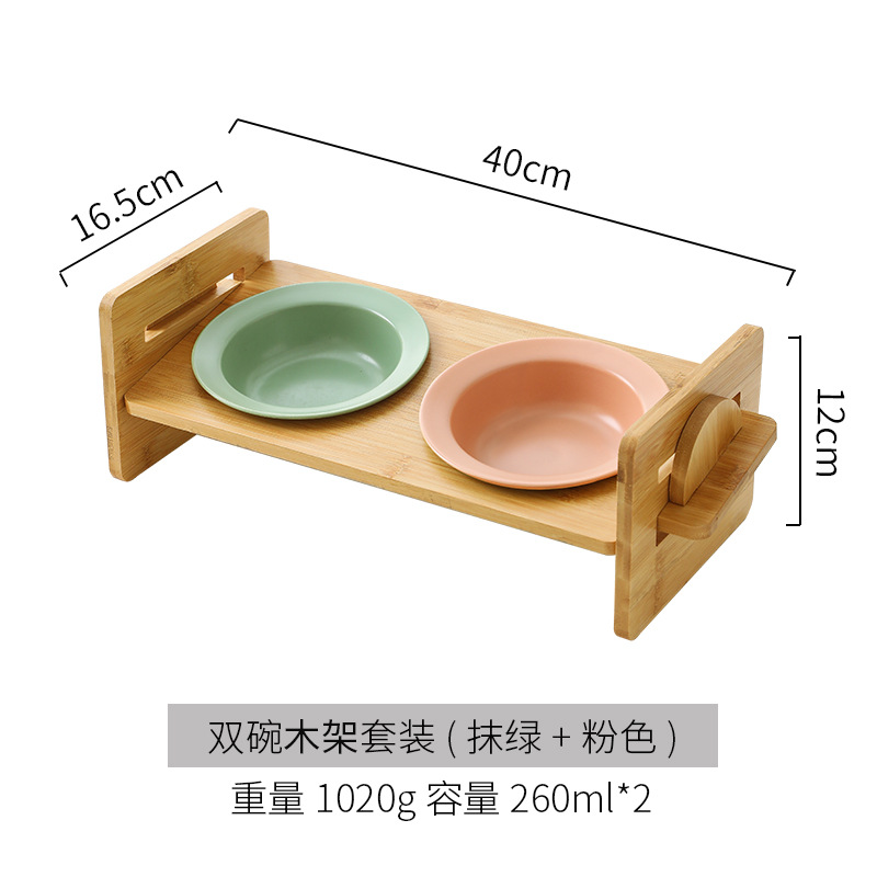 세라믹 그릇 고양이와 개 그릇 고양이 먹이 그릇 그릇 비스듬한 입 대나무 랙 마시는 그릇 더블 그릇 보호 자궁 경부 그릇 높은 애완 동물 그릇