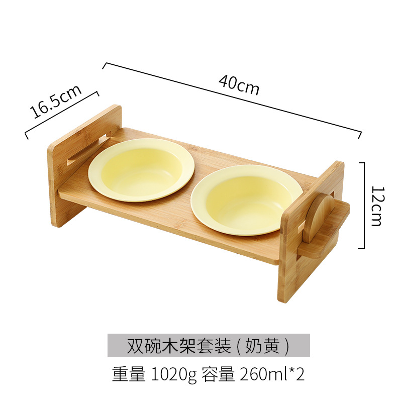 • 더블 그릇과 더블 조립 나무 프레임 세트-(우유 노란색 우유)