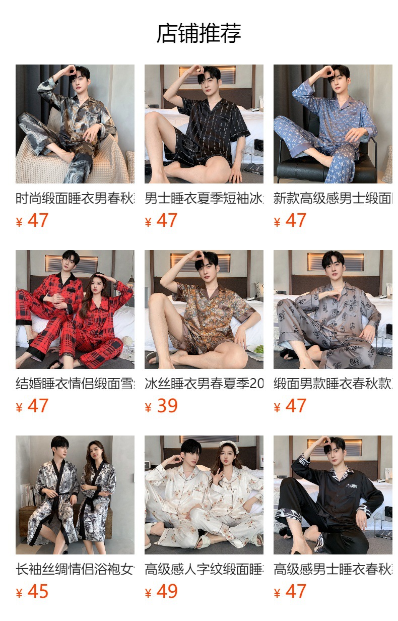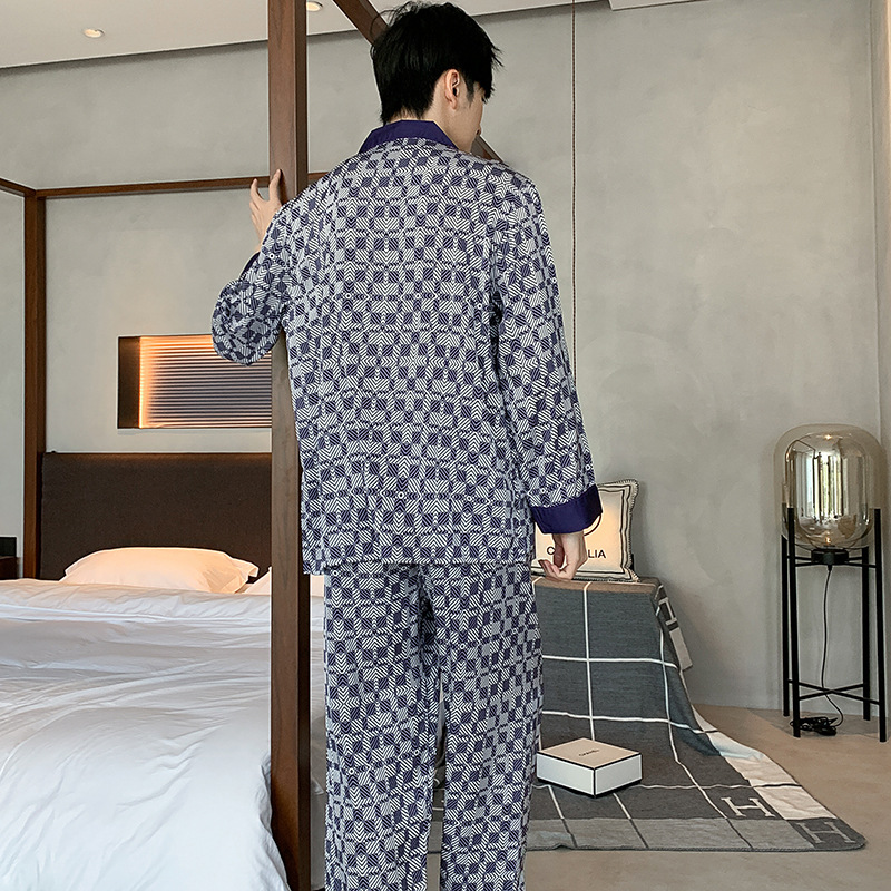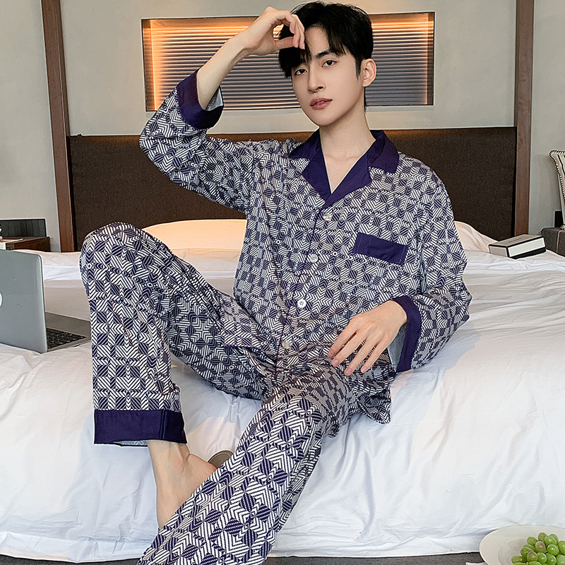 잠옷 남성 봄과 가을 아이스 실크 세트 젊고 중년 플러스 사이즈 새틴 모조 실크 아우터웨어 가정복 봄과 가을스토어 가기