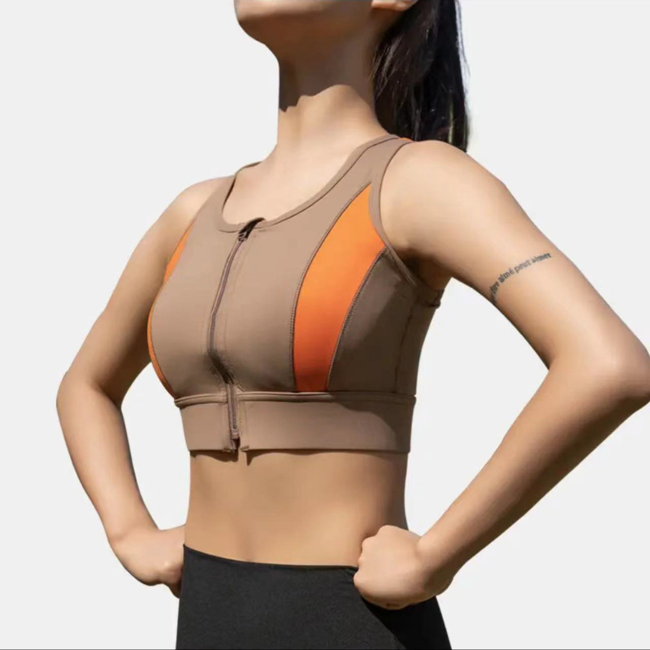 고정 컵 스포츠 속옷 조정 가능한 달리기 브라 요가 앞 지퍼 컬러 매칭 브라 탄성 피트니스 조끼