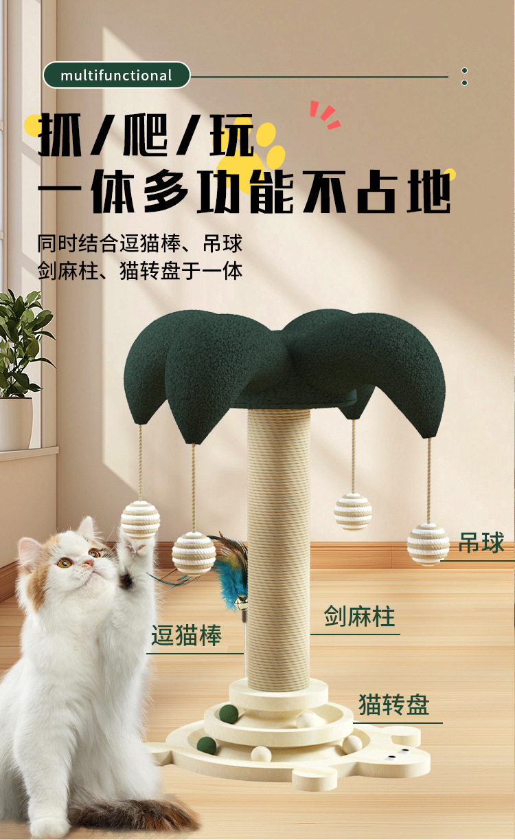 批发实木转盘猫玩具剑麻柱磨爪器耐磨不掉屑猫抓板猫爬架