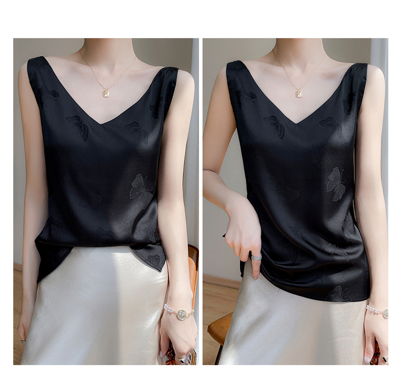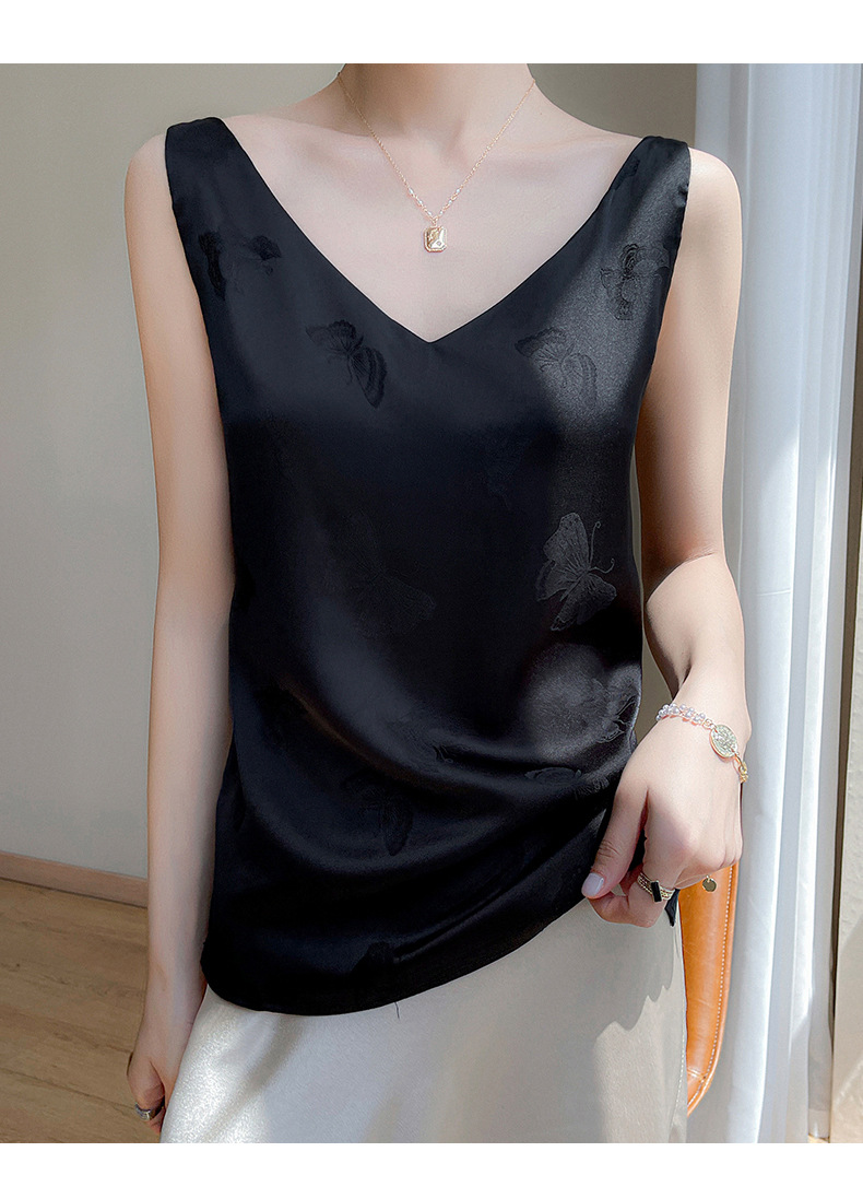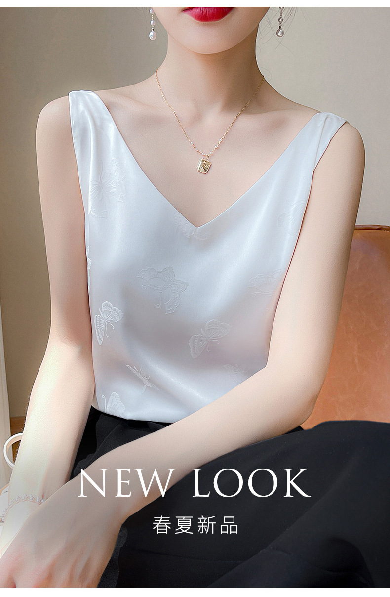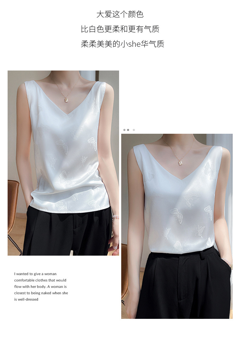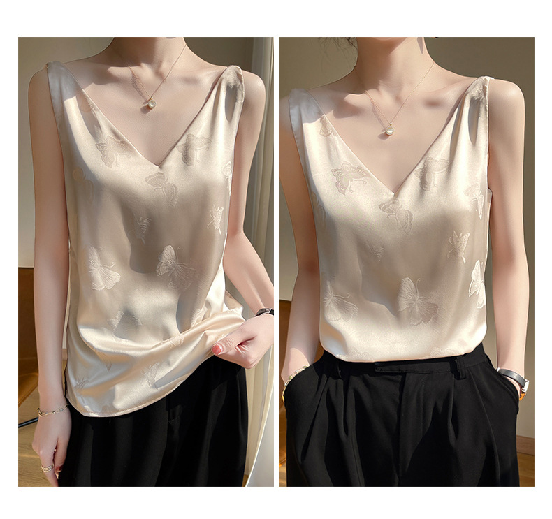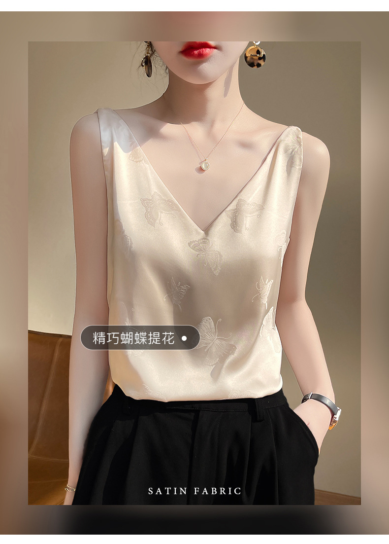 고급 엠보싱 실크 조끼 여성용 겉옷 짧은 느슨한 민소매 아름다운 작은 셔츠 백리스 슬링 사교계 탑스토어 가기