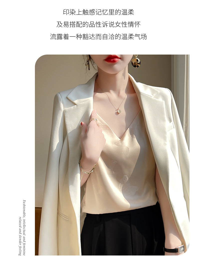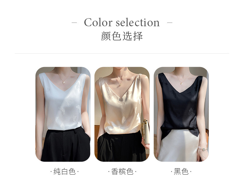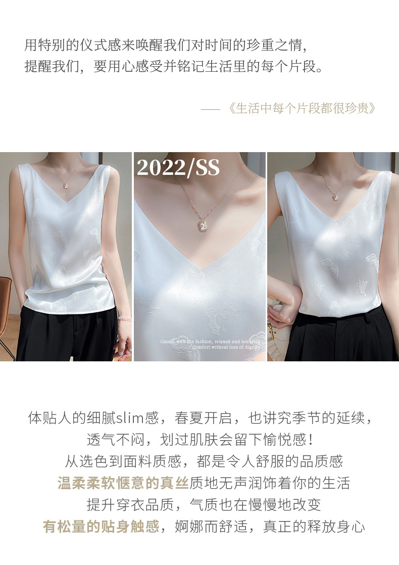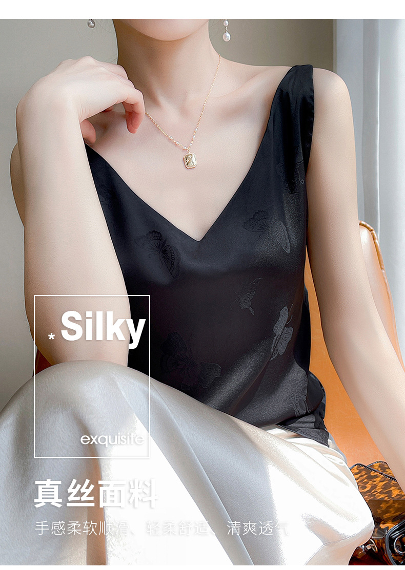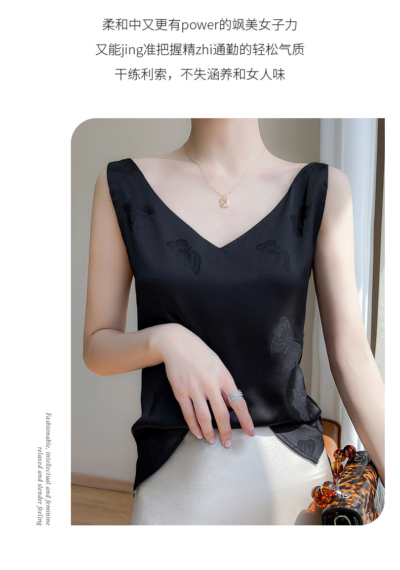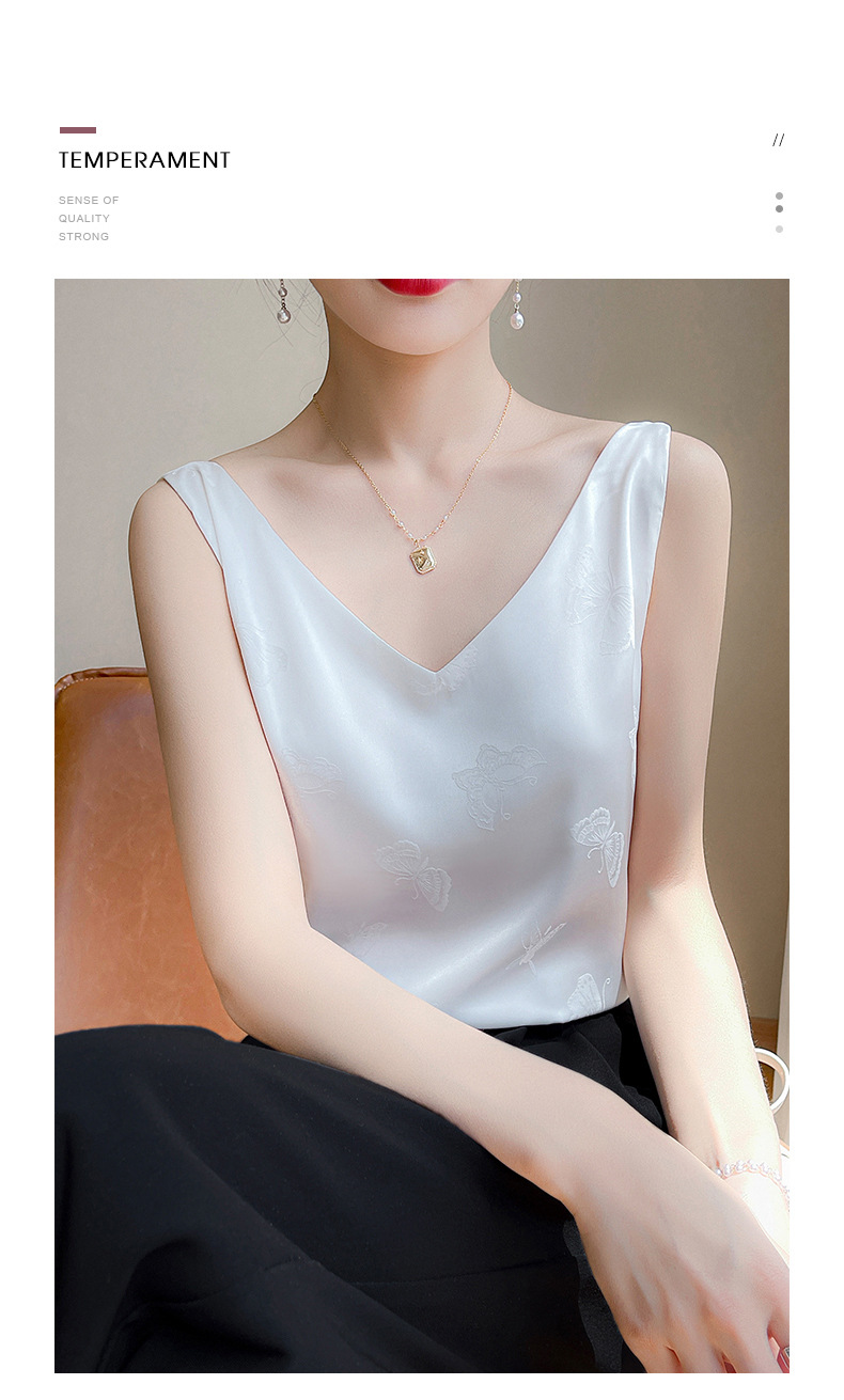 고급 엠보싱 실크 조끼 여성용 겉옷 짧은 느슨한 민소매 아름다운 작은 셔츠 백리스 슬링 사교계 탑스토어 가기