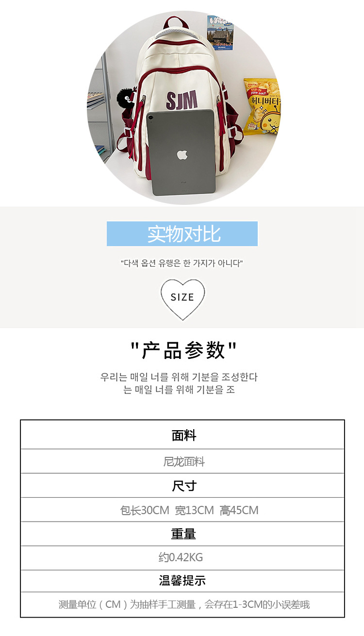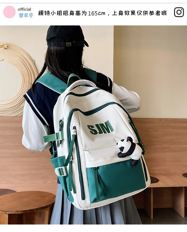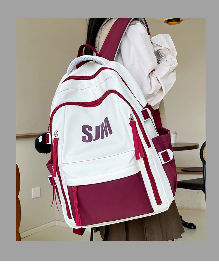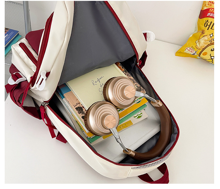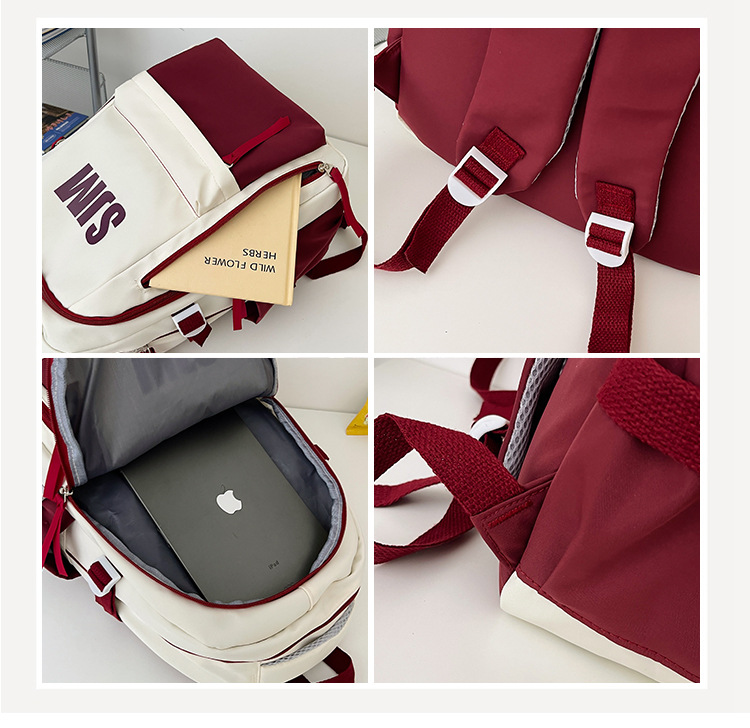 배낭 2024 새로운 중학교 학생 책가방 한국식 패션 대비 컬러 배낭 대용량 패션 브랜드 가방 대외 무역