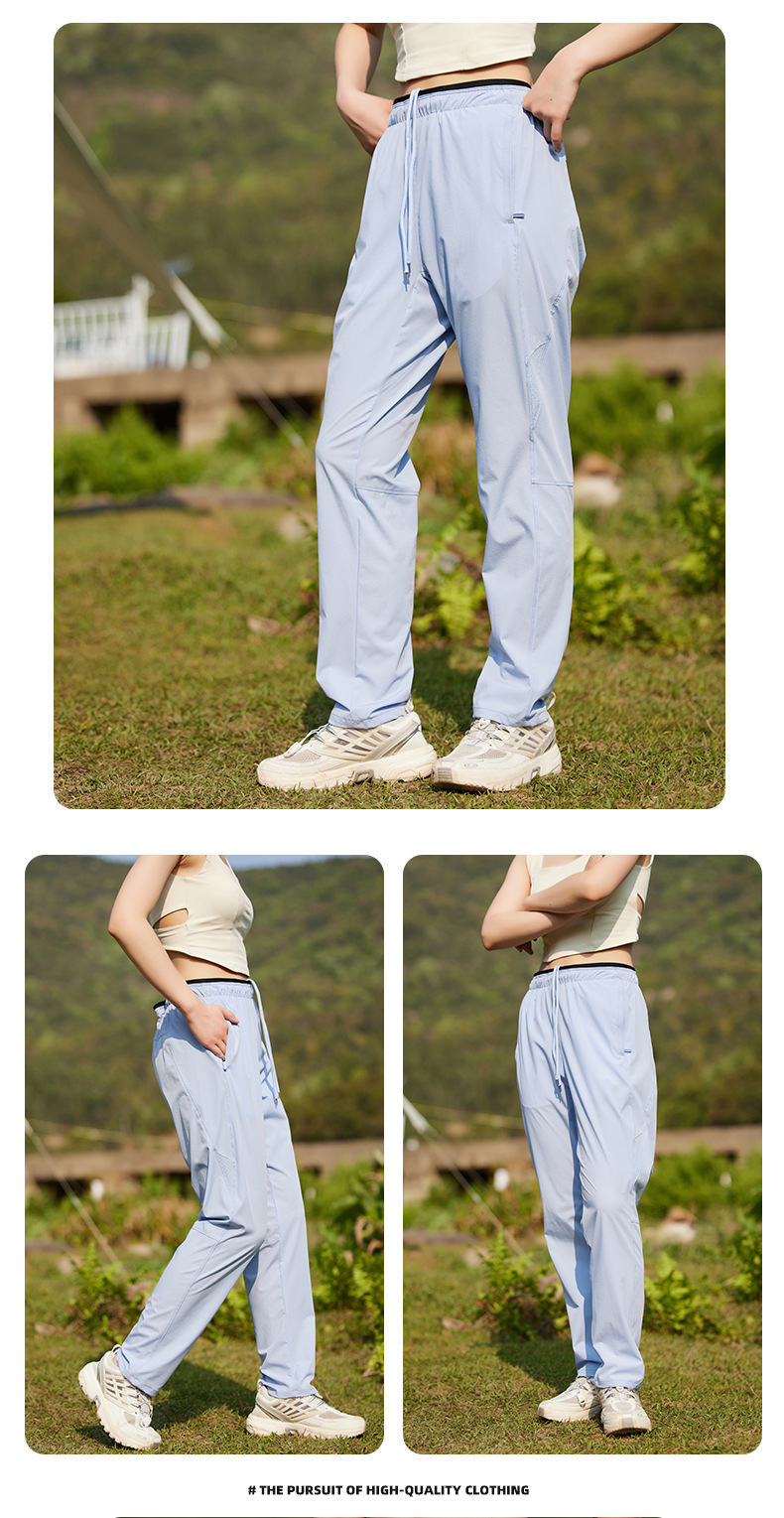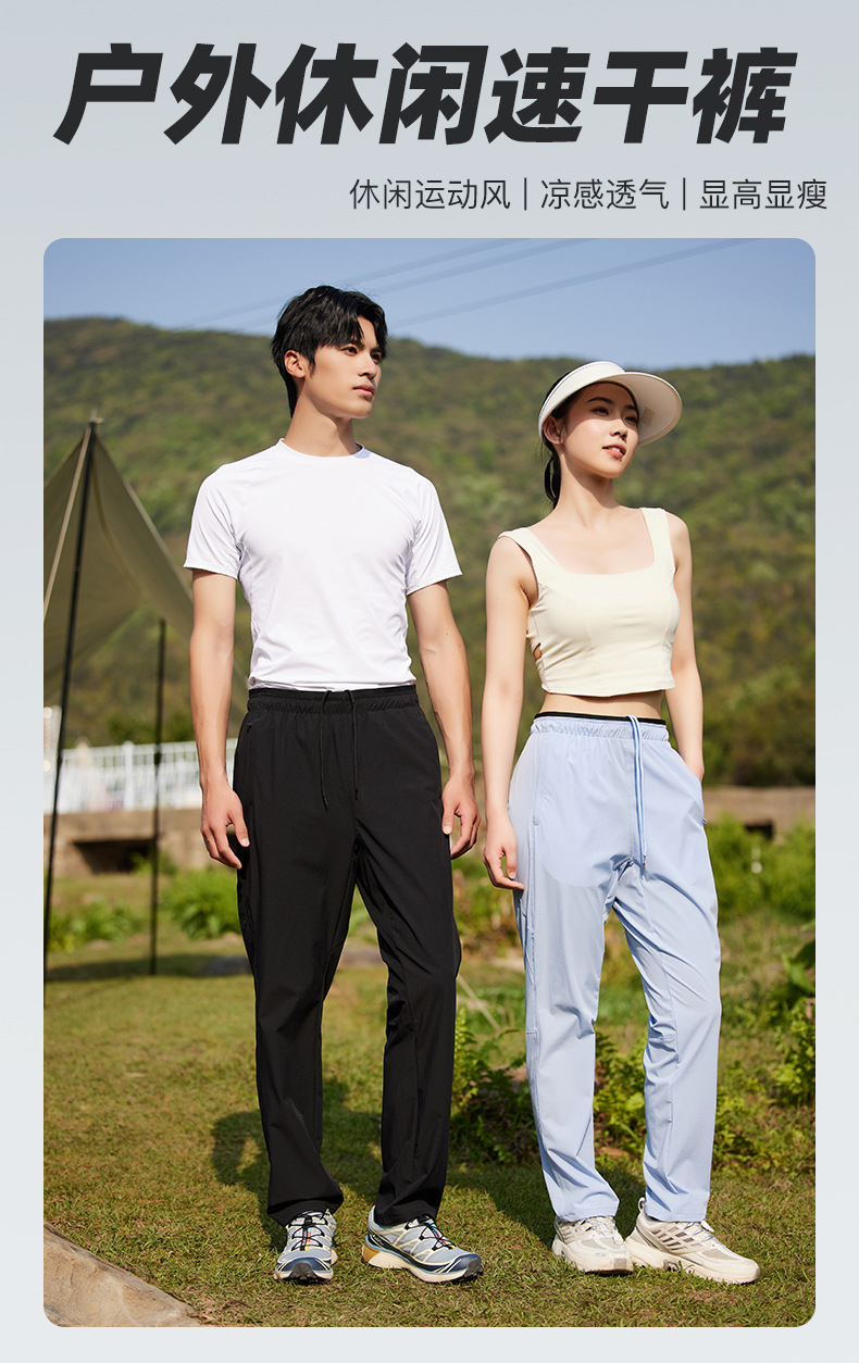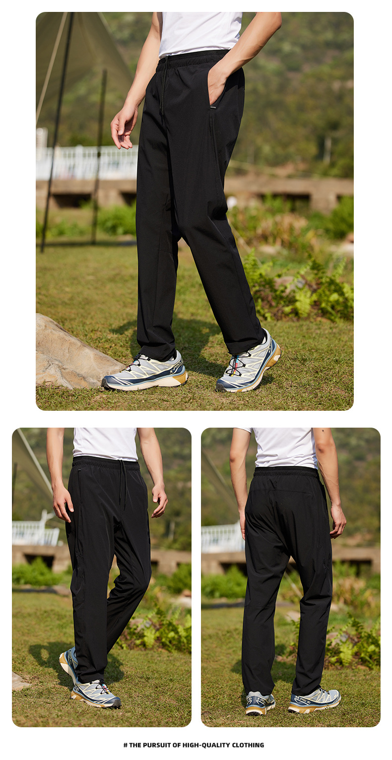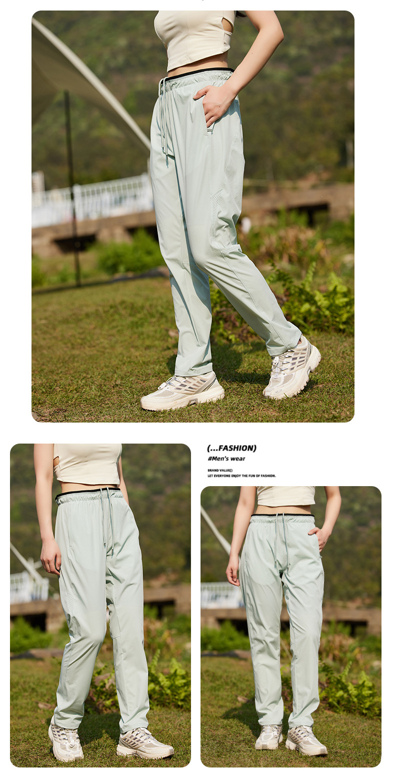 여름 2025 아이스 실크 속건성 캐주얼 바지 남성용 얇은 스트레이트 레그 바지 통기성 대형 스포츠 바지 여성용