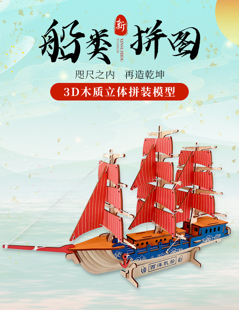 손으로 조립 된 서양 항해 시뮬레이션 모델 학생 조립 나무 장난감 diy 퍼즐 빌딩 블록 퍼즐 도매스토어 가기