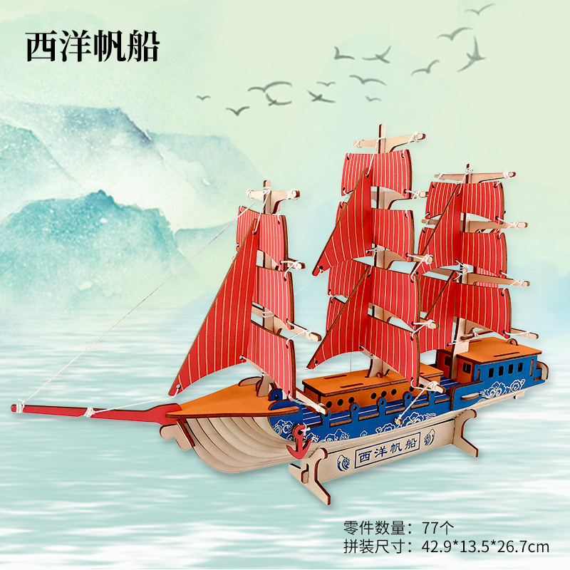 손으로 조립 된 서양 항해 시뮬레이션 모델 학생 조립 나무 장난감 diy 퍼즐 빌딩 블록 퍼즐 도매