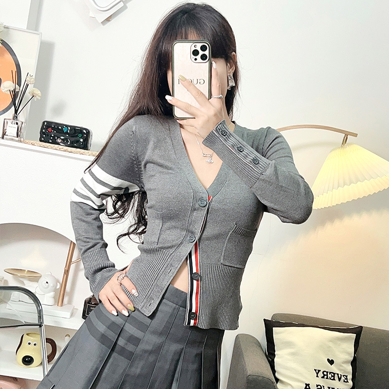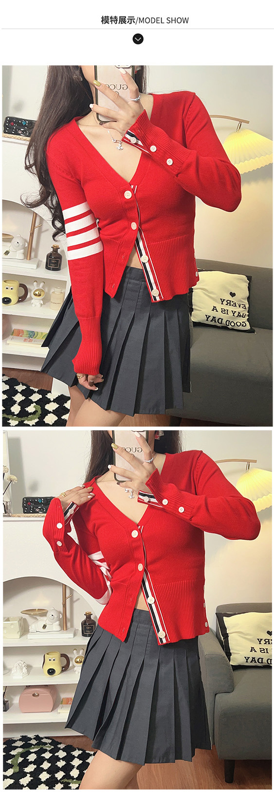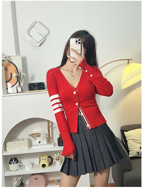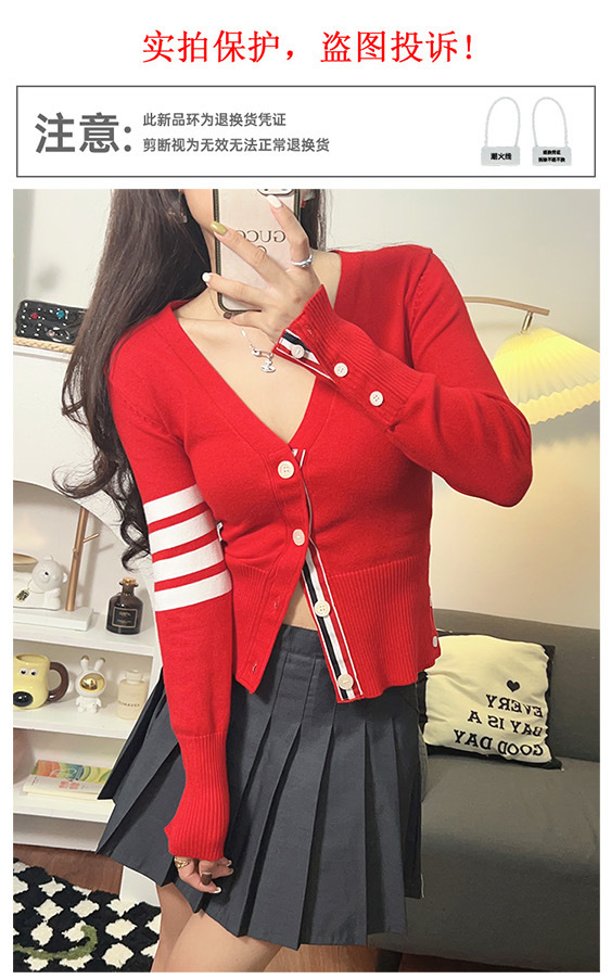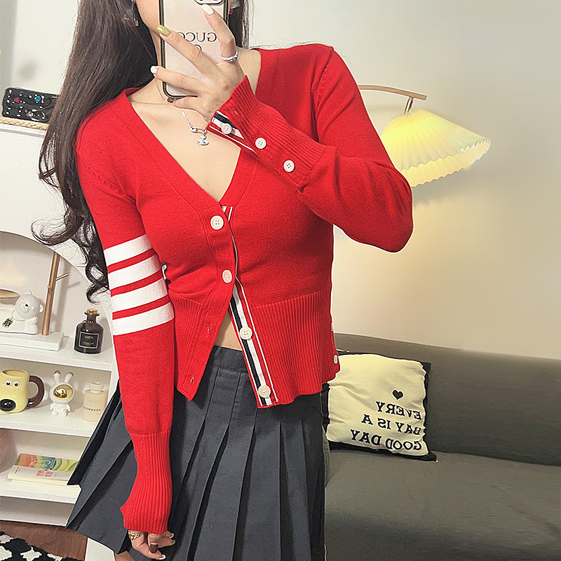 tb 레드 분위기 가디건 여성용 2025 봄 가을 신상 니트 여성용 생년월일 크리스마스 숏 코트스토어 가기