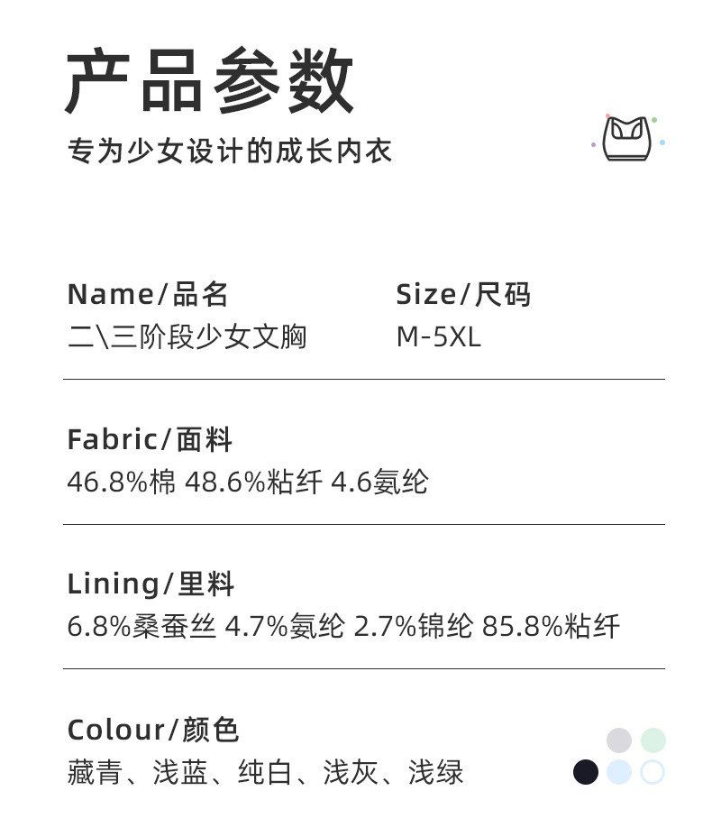 소녀 속옷 청소년 발달 기간 중학생 여성 나이 많은 어린이 충격 2 ~ 3 단계 실크 스포츠 브라스토어 가기