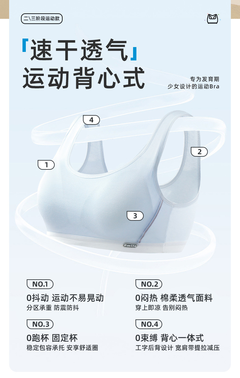 소녀 속옷 청소년 발달 기간 중학생 여성 나이 많은 어린이 충격 2 ~ 3 단계 실크 스포츠 브라
