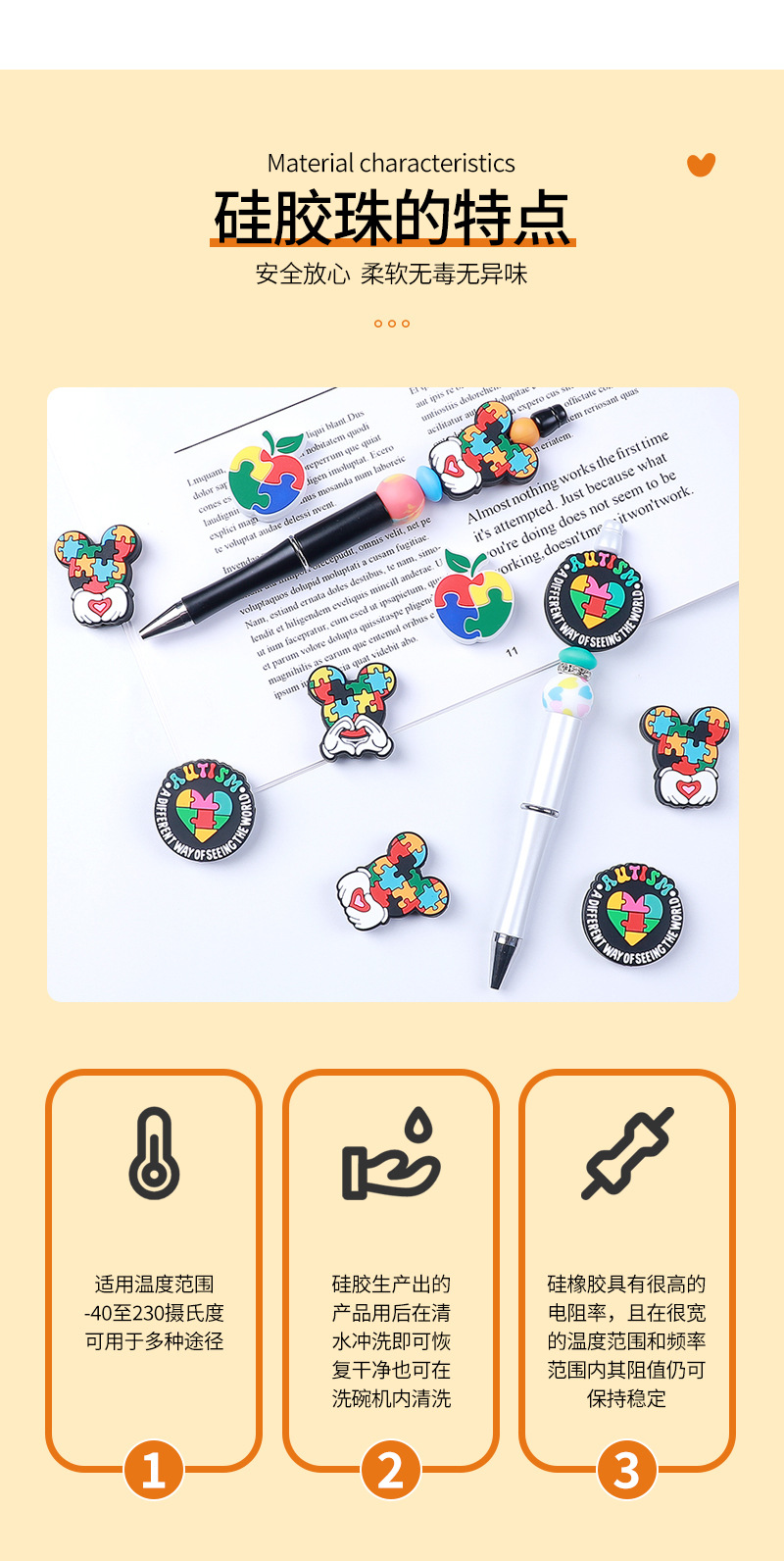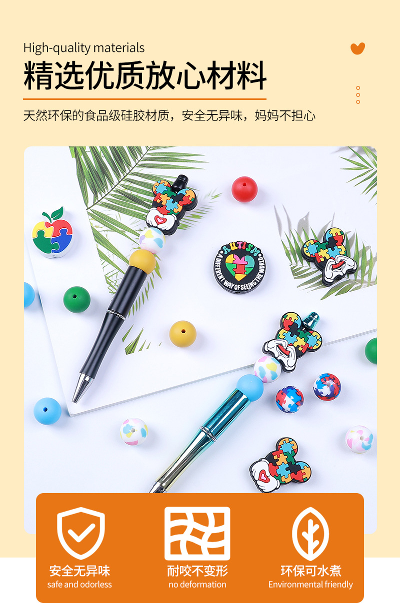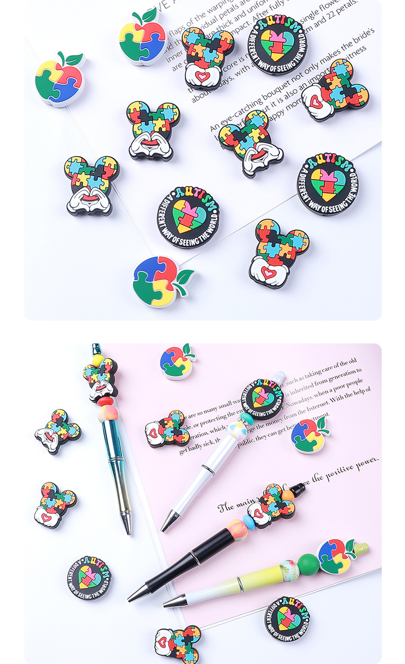 공장 재고 애플 실리콘 구슬 만화 동물 소 느슨한 구슬 수제 DIY 구슬 펜 실리콘 구슬 도매