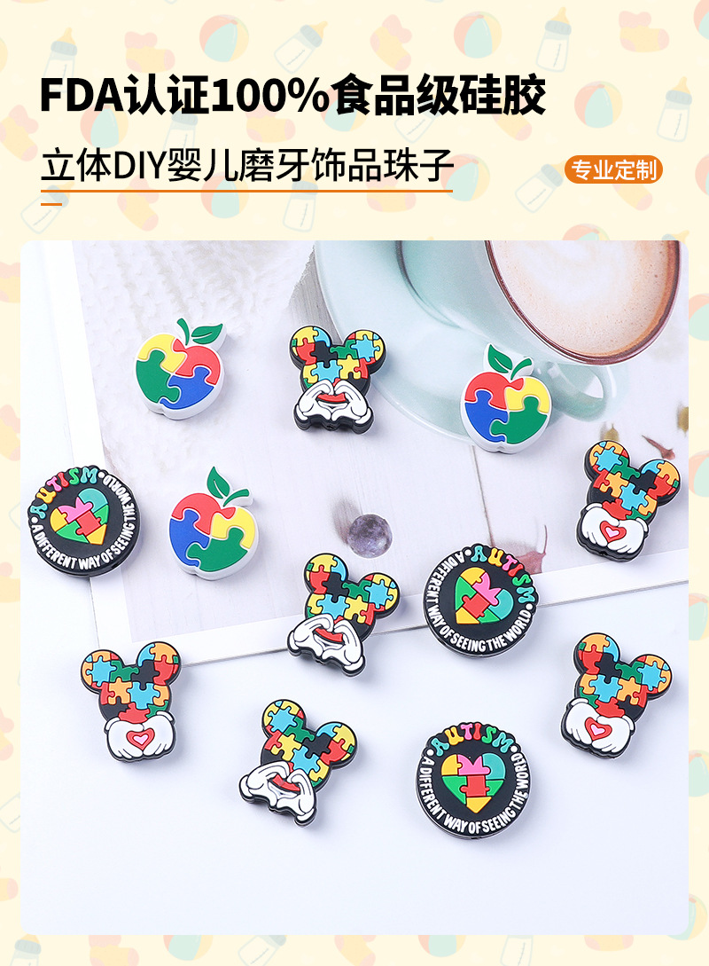 공장 재고 애플 실리콘 구슬 만화 동물 소 느슨한 구슬 수제 DIY 구슬 펜 실리콘 구슬 도매스토어 가기