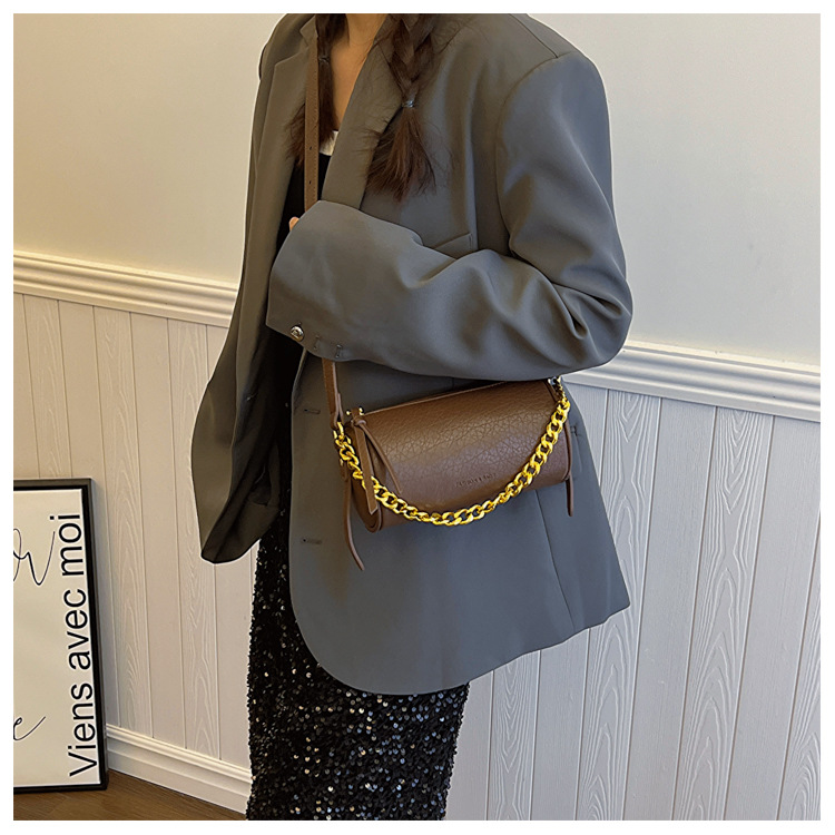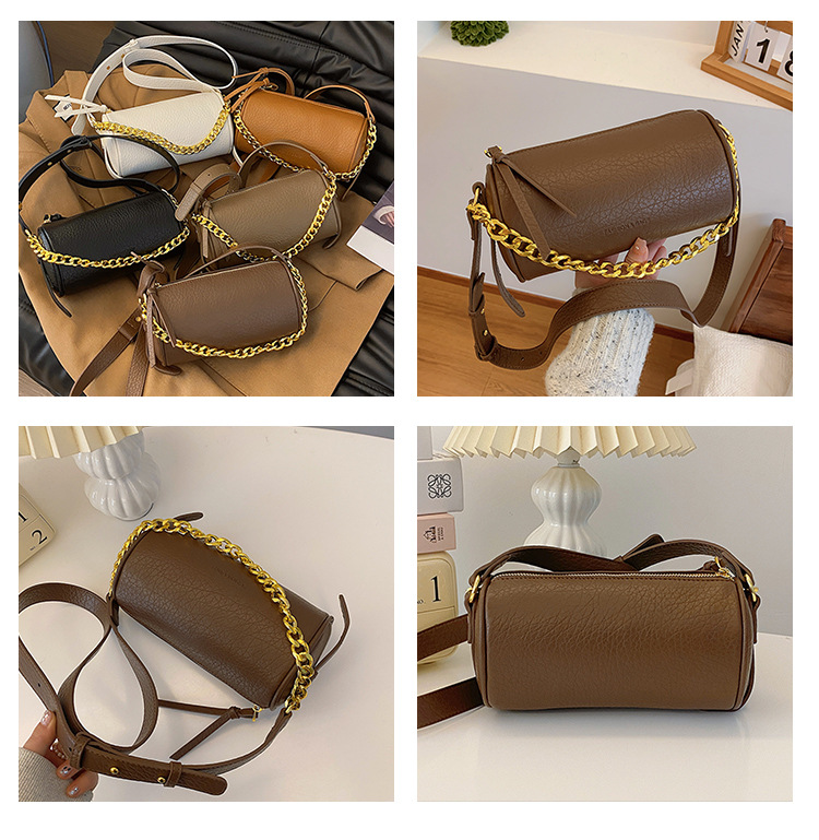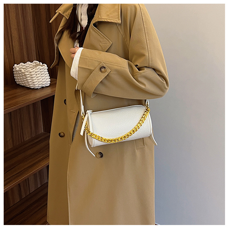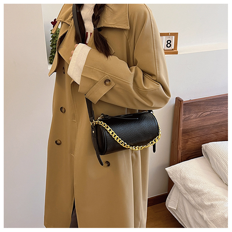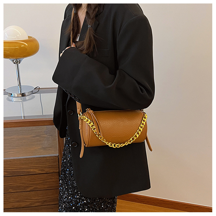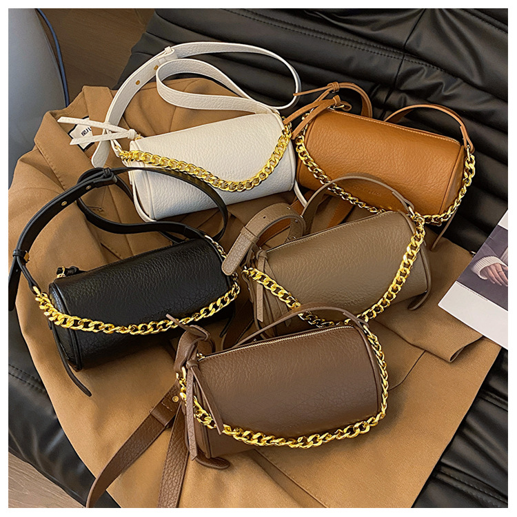 고품질 틈새 복고풍 보스턴 가방 여성 2024 새로운 패션 금속 체인 숄더백 메신저 가방