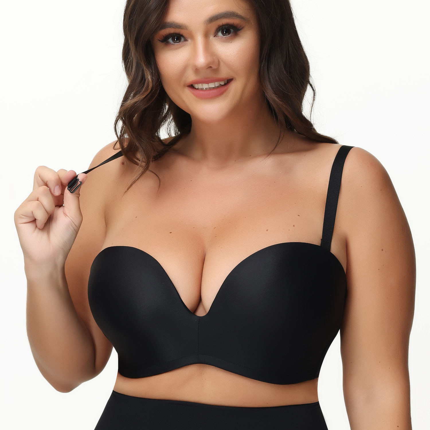 아마존 AliExpress 대외 무역 무선 얇은 광택 푸시 업 끈없는 속옷 섹시한 플러스 사이즈 브래지어스토어 가기
