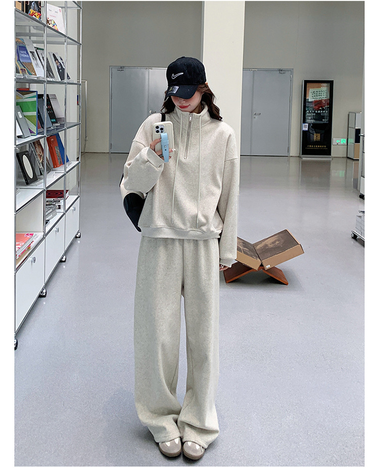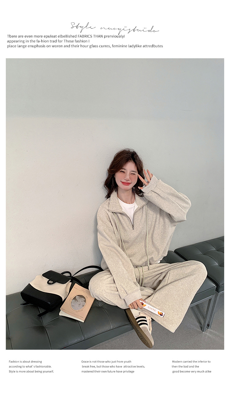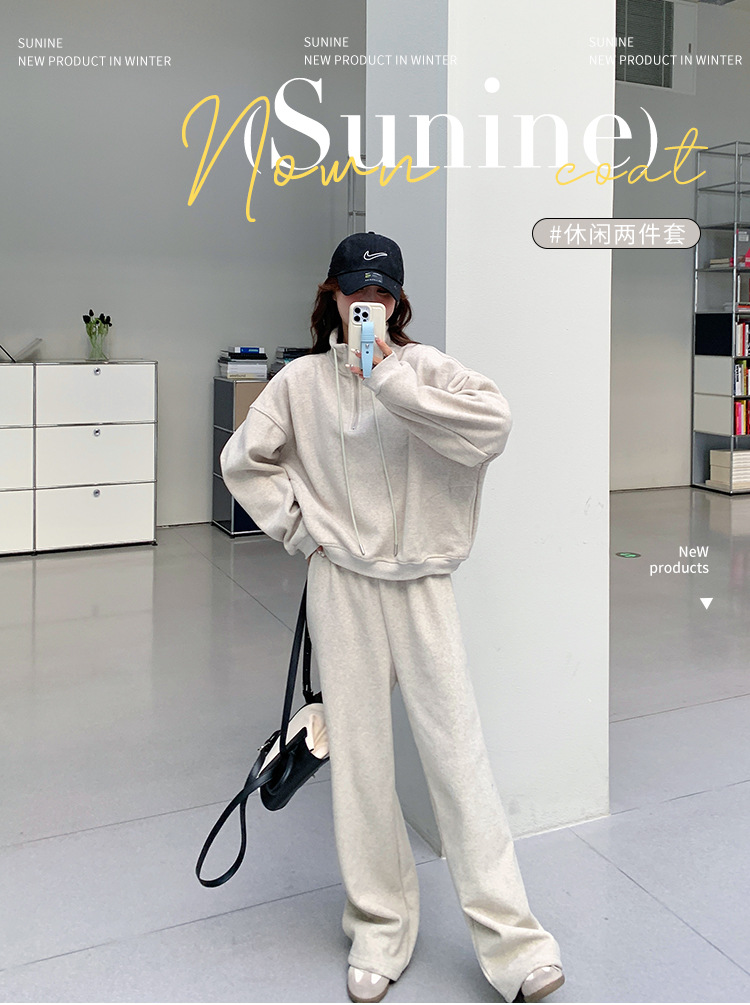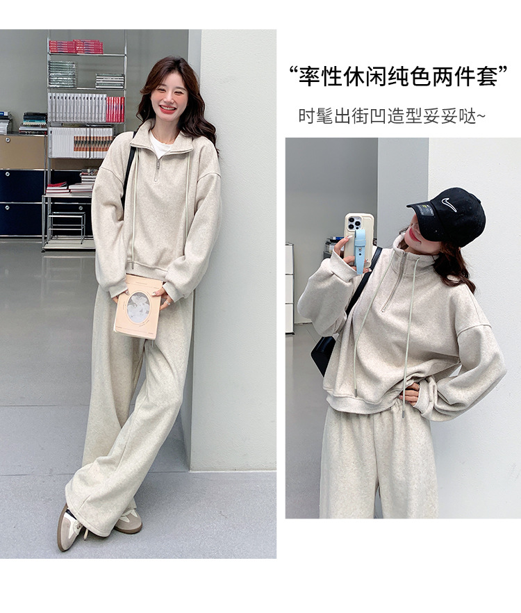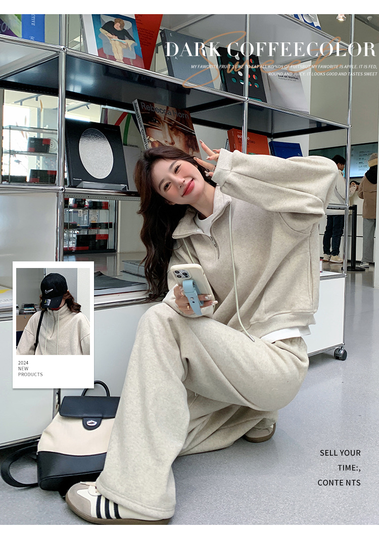 2024 봄과 가을 새로운 순수 컬러 스웨터 와이드 레그 팬츠 2 피스 세트 고급 패션 캐주얼 학생 스포츠 세트 여성스토어 가기
