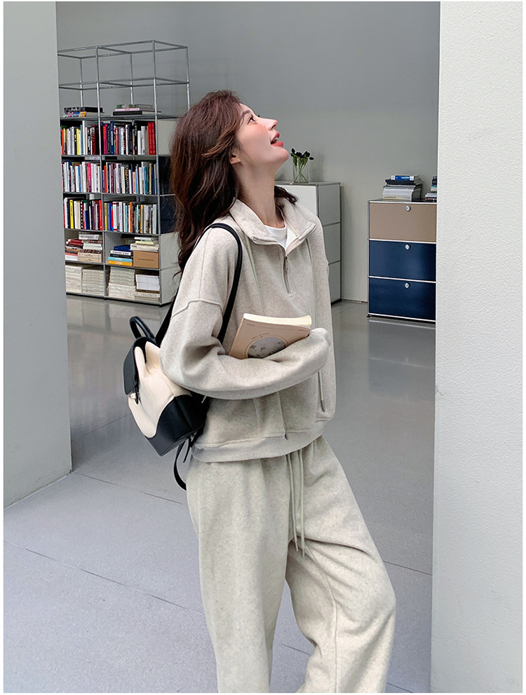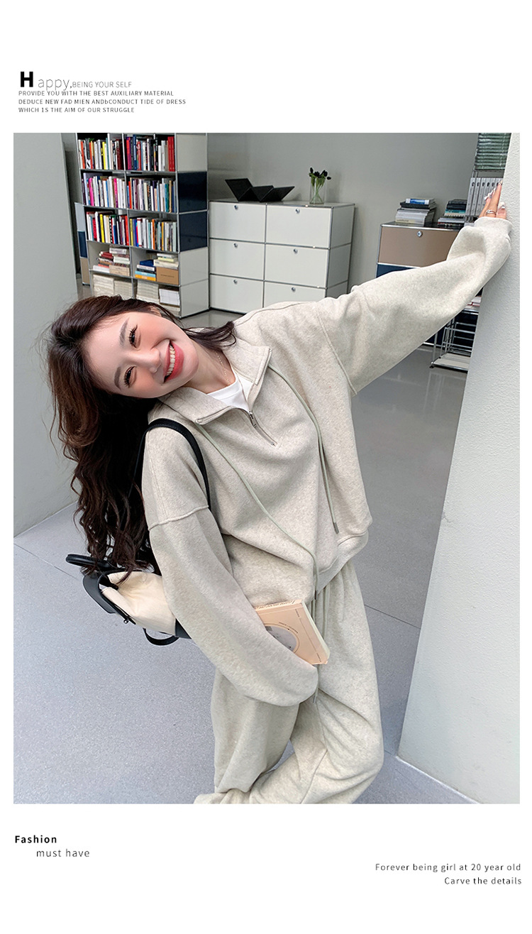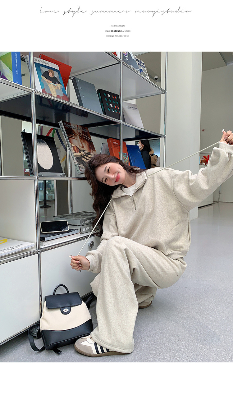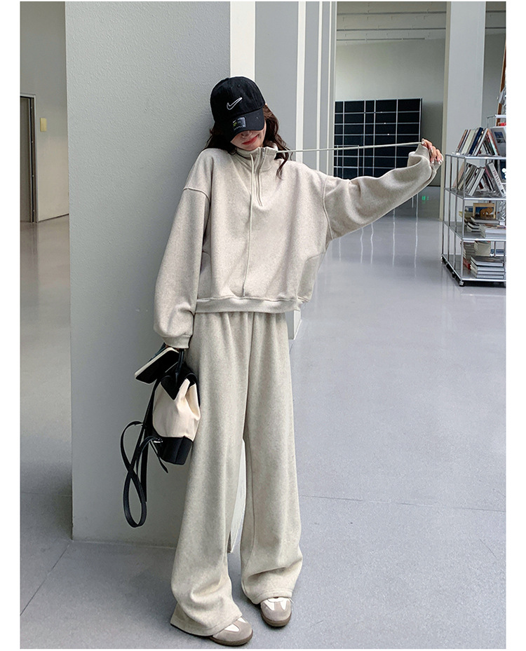 2024 봄과 가을 새로운 순수 컬러 스웨터 와이드 레그 팬츠 2 피스 세트 고급 패션 캐주얼 학생 스포츠 세트 여성스토어 가기