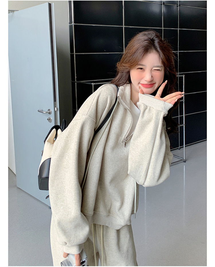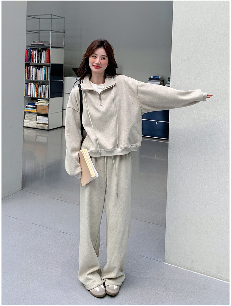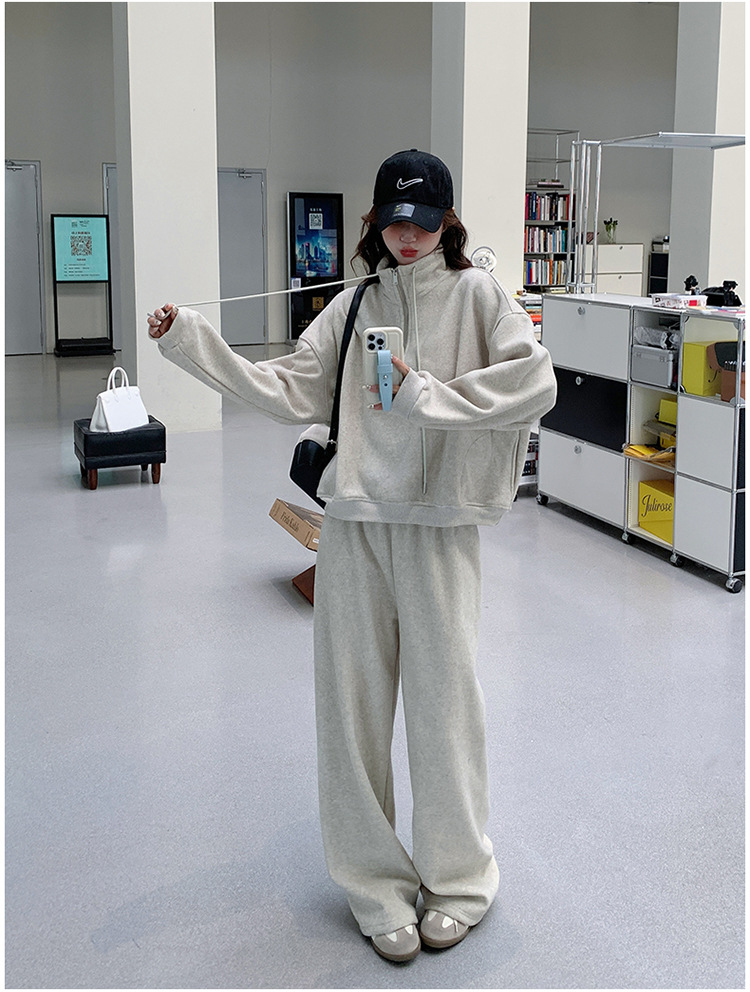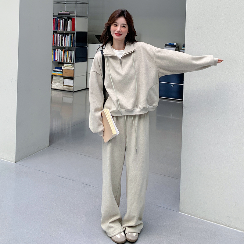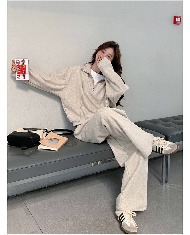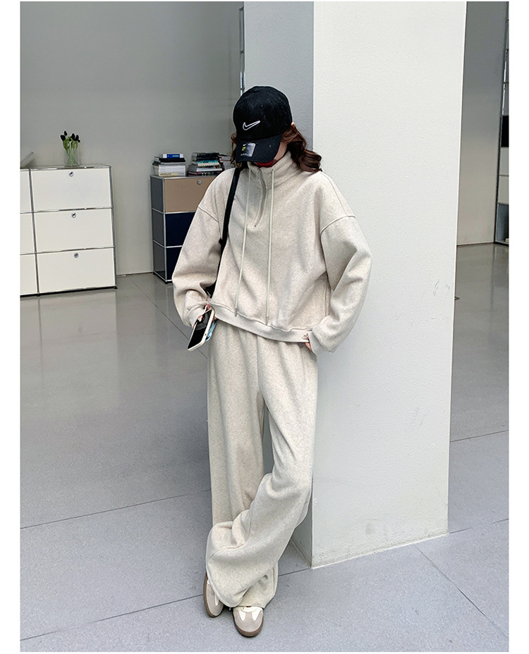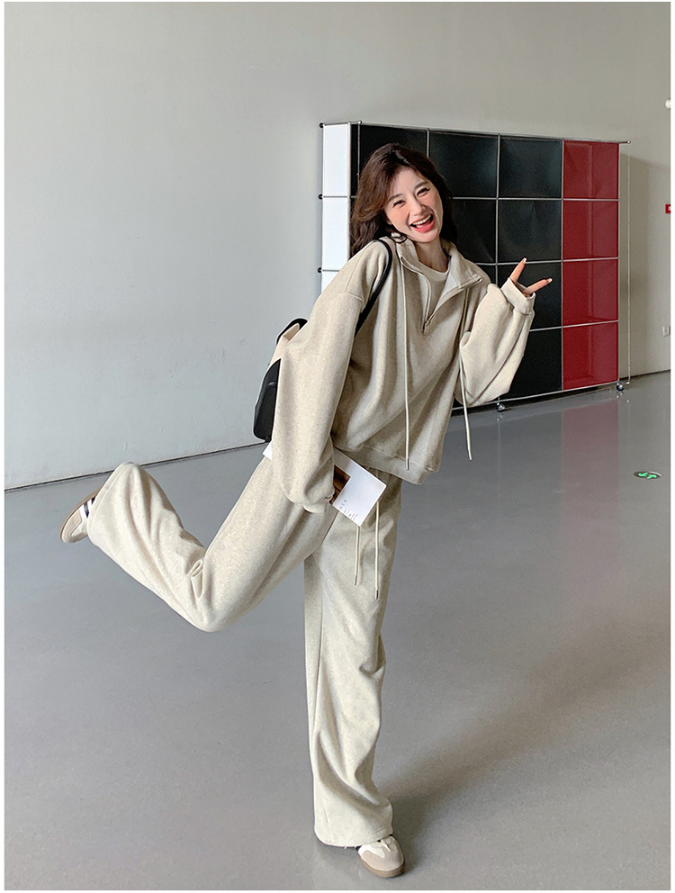 2024 봄과 가을 새로운 순수 컬러 스웨터 와이드 레그 팬츠 2 피스 세트 고급 패션 캐주얼 학생 스포츠 세트 여성
