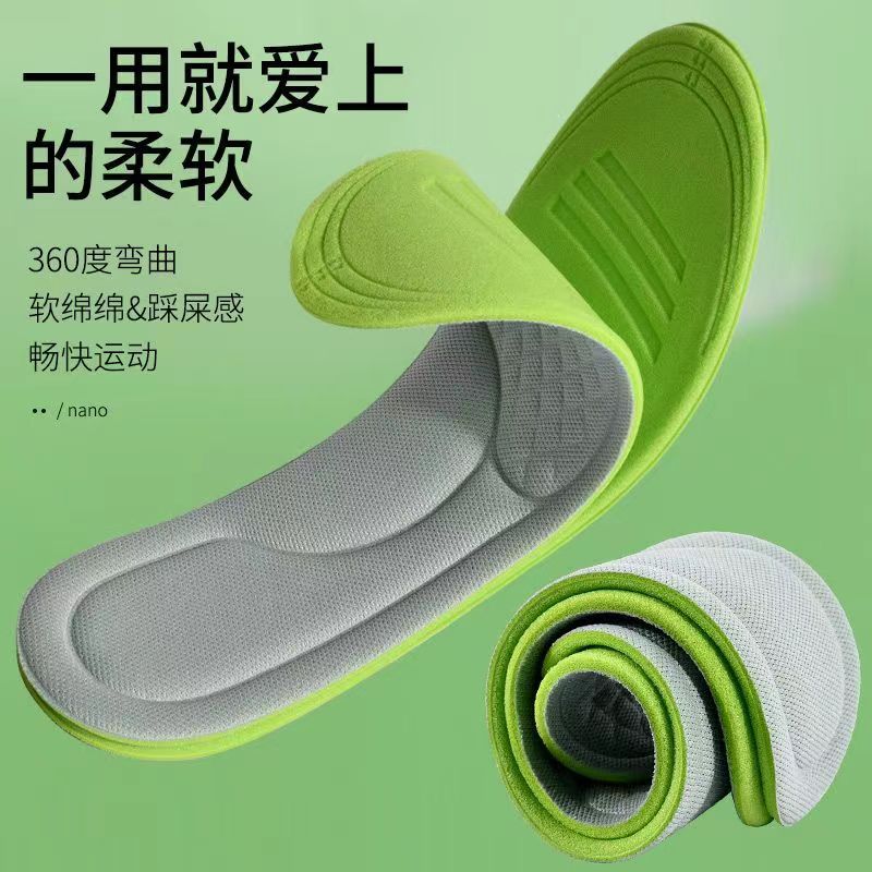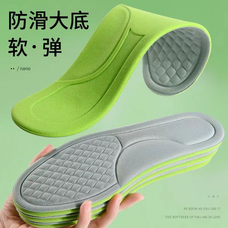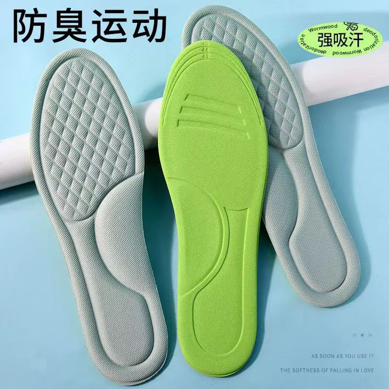 부드러운 탄성 마사지 충격 흡수 처진 스포츠 깔창 미끄럼 방지 땀 흡수 통기성 두꺼운 남성 및 여성 스포츠 깔창 국경스토어 가기