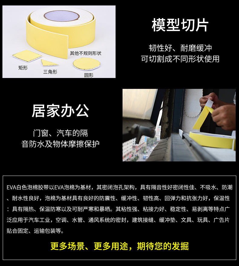 EVA 흰색 스폰지 테이프 거품 방수 충격 방지 버퍼 범퍼 스트립 자동차 방음 밀봉 폼 접착제 3mm 두께스토어 가기