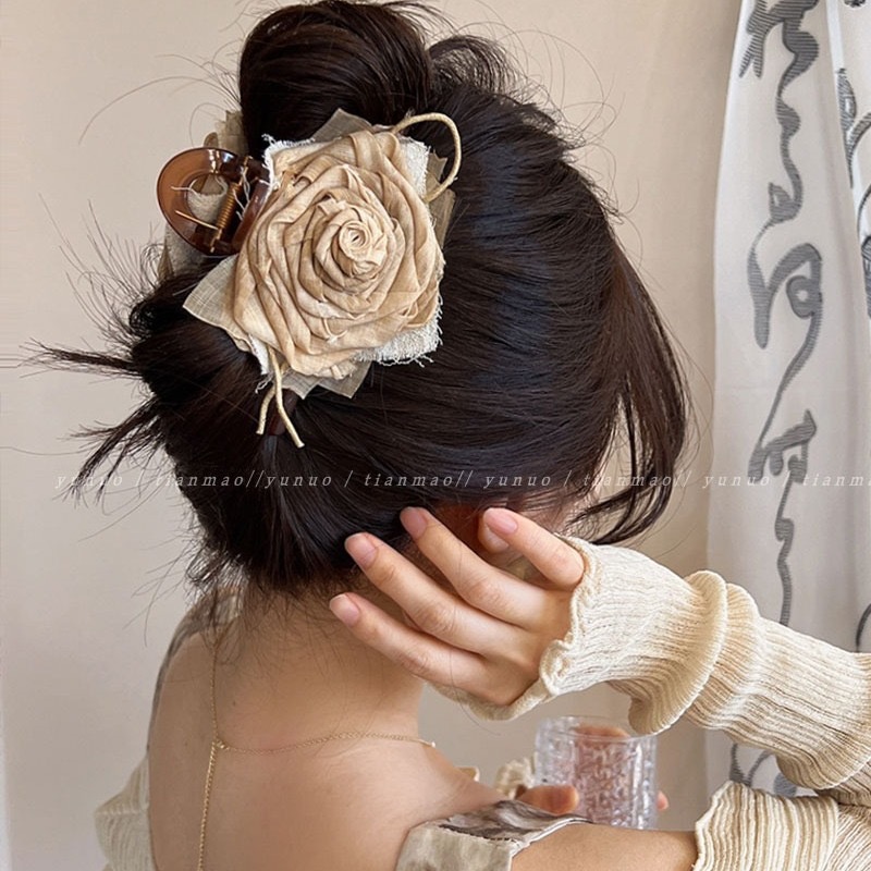중국식당 장옌과 같은 스타일의 건조한 장미 머리핀 여성용 레트로 꽃 머리핀 헤어 액세서리 샤크 클립 여성용스토어 가기