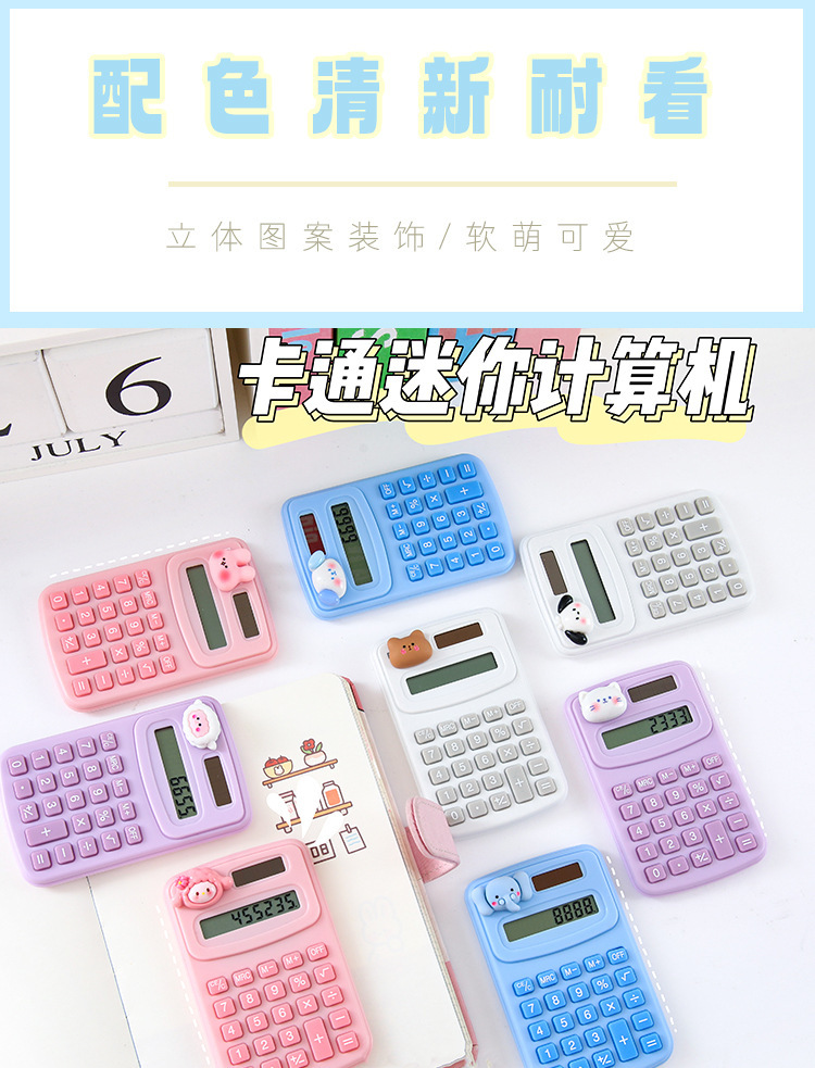 귀여운 만화 스타일의 미니 휴대용 전용 사무용 초등학생용 고급 계산기 도매스토어 가기