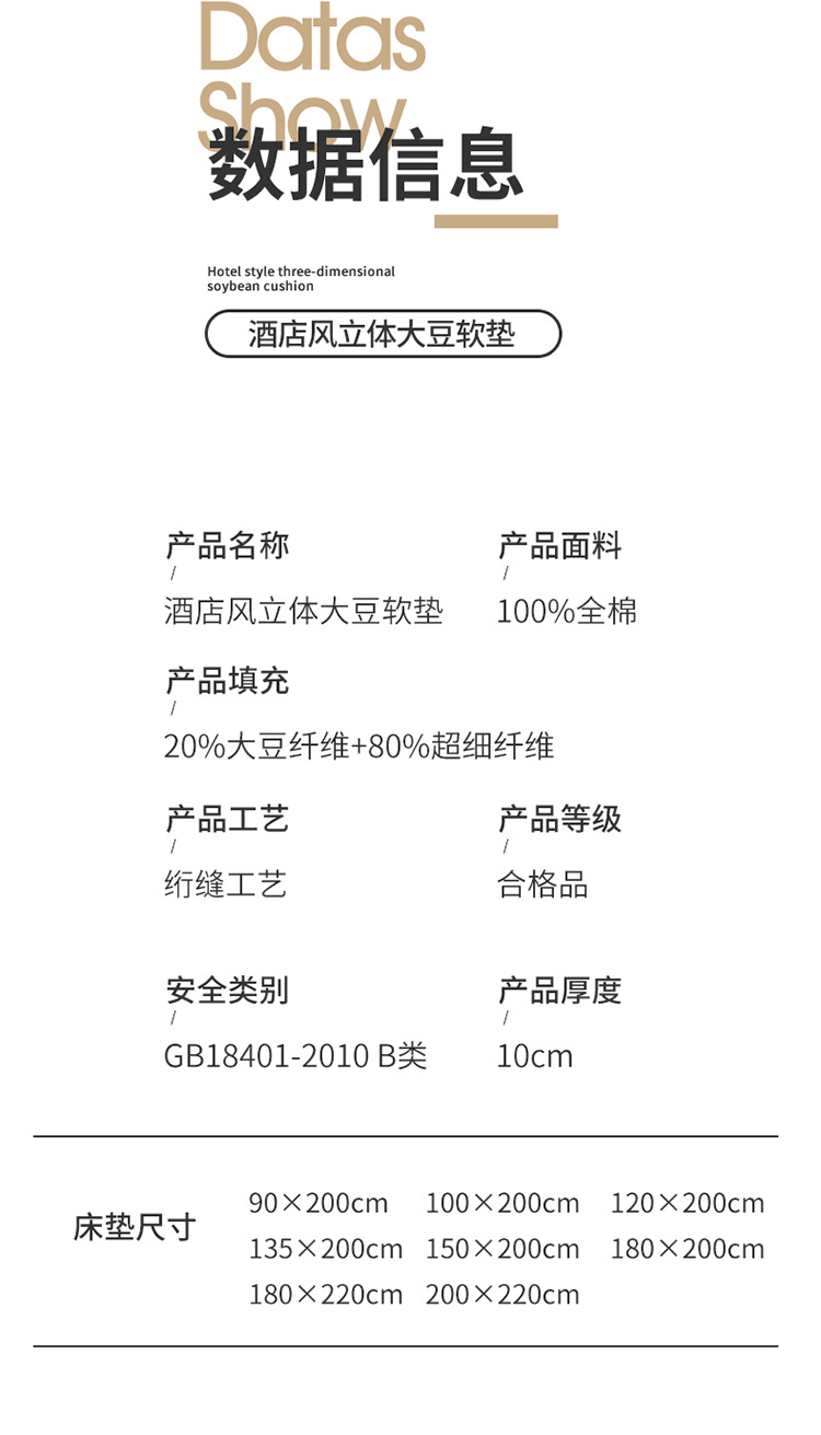 핫 세일 힐튼 5 성급 호텔 두꺼운 3 차원 콩 섬유 매트리스 소프트 쿠션 호텔 침대 매트리스