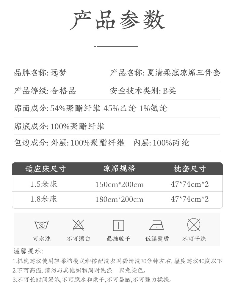 Yuanmeng 여름 부드러운 여름 매트 세 조각 세탁 더블 에어컨 매트 접이식 매트 카운터 같은 스타일