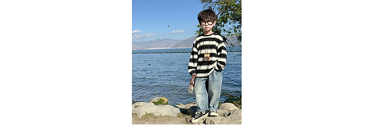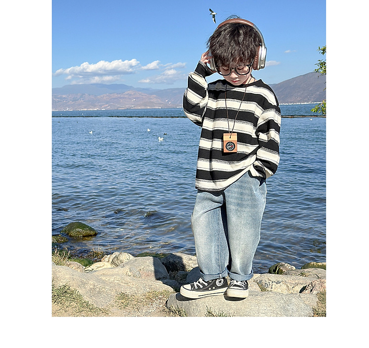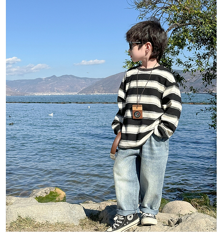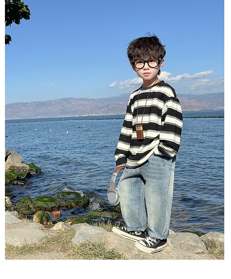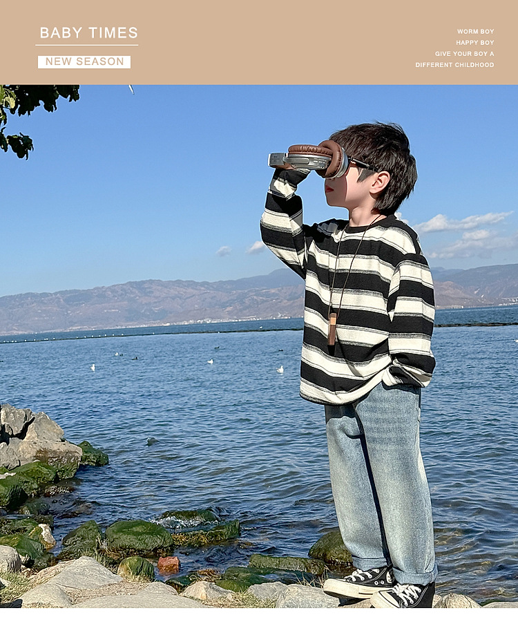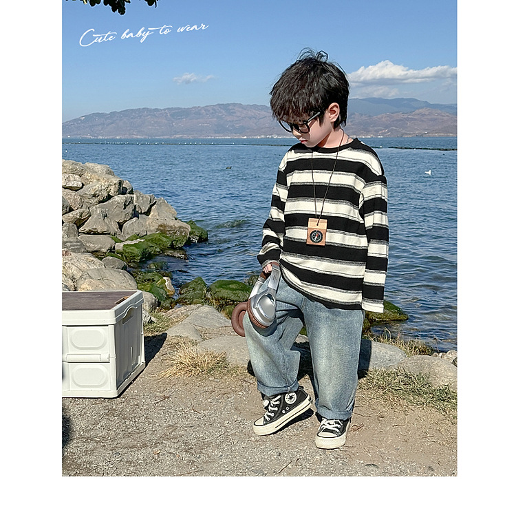 소년 봄 긴팔 티셔츠는 새로운 어린이 봄과 가을 줄무늬 셔츠 소년 봄면 탑을 2024스토어 가기