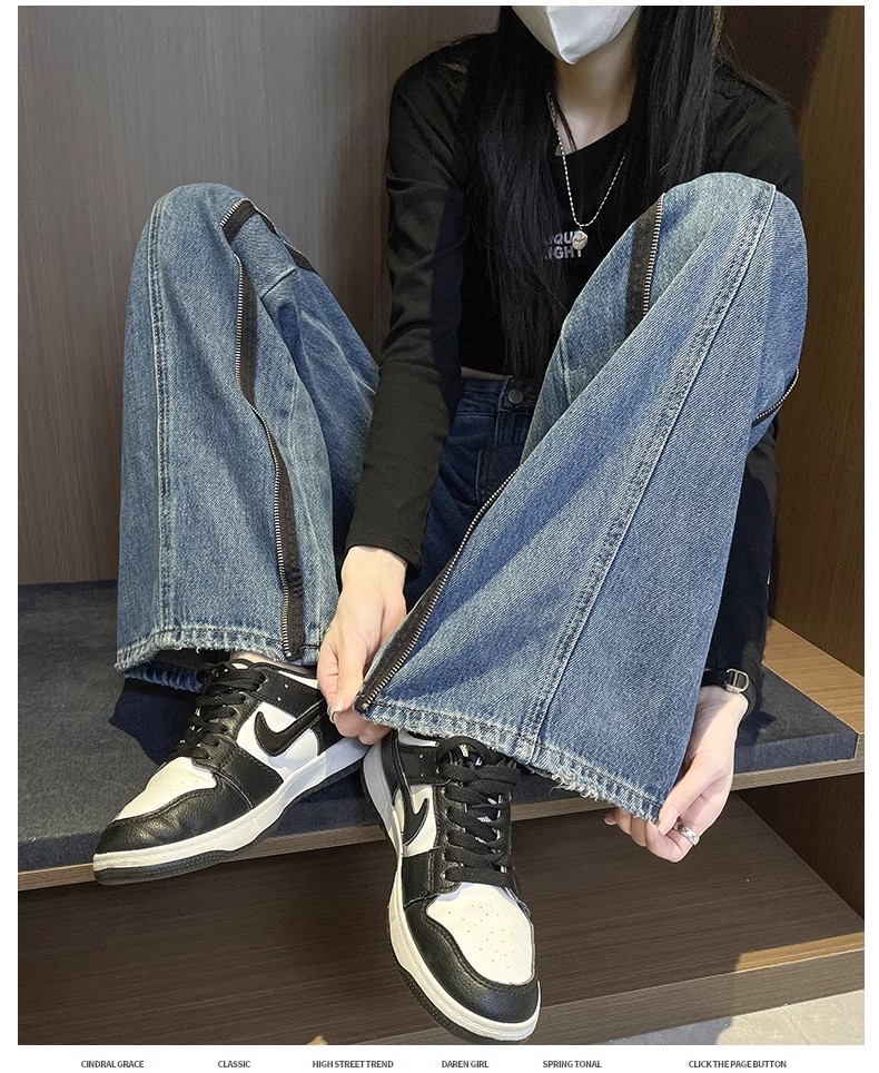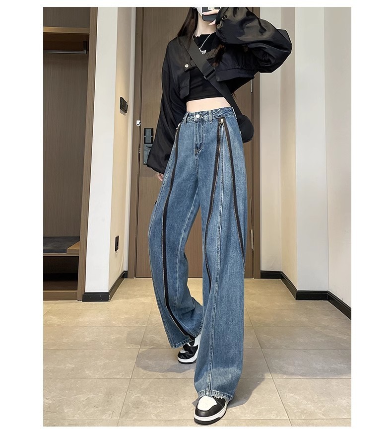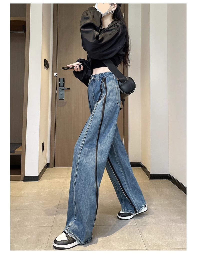 새로운 플러스 사이즈 느슨한 높은 허리 슬리밍 스트레이트 걸레 바지 패션 여성을위한 레트로 넓은 다리 청바지 2024 봄