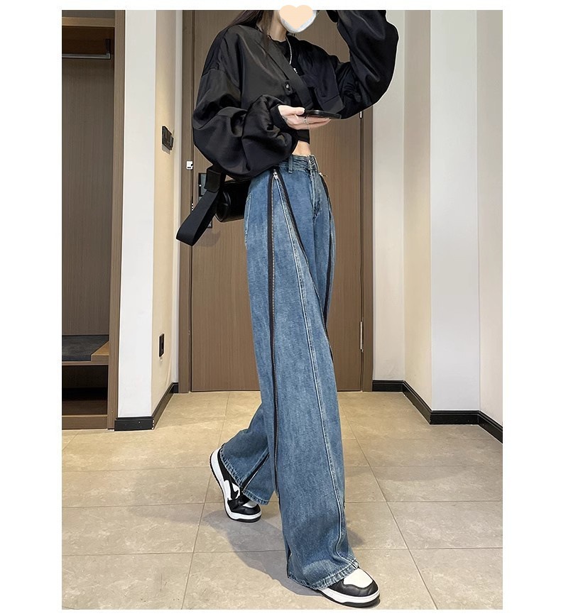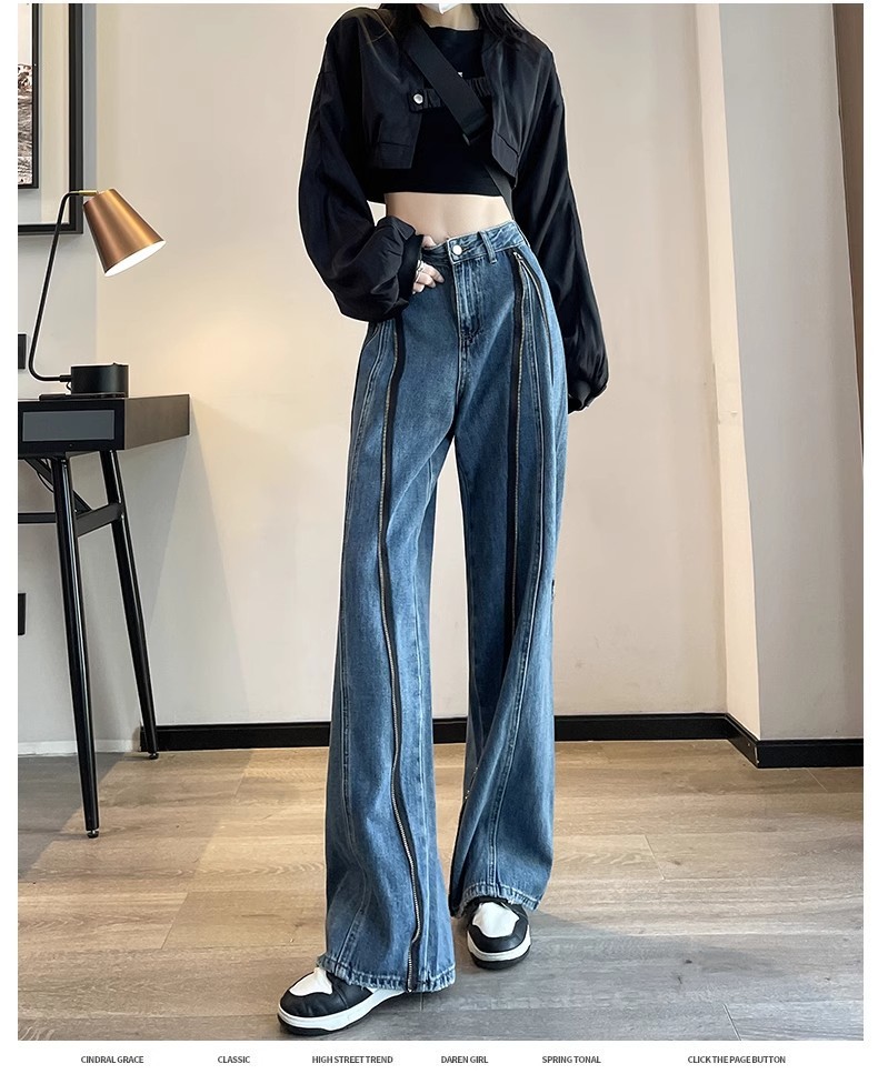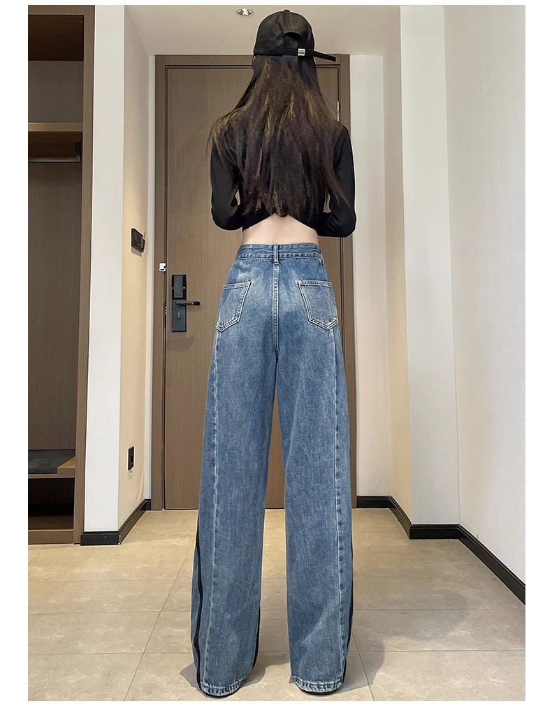 새로운 플러스 사이즈 느슨한 높은 허리 슬리밍 스트레이트 걸레 바지 패션 여성을위한 레트로 넓은 다리 청바지 2024 봄스토어 가기