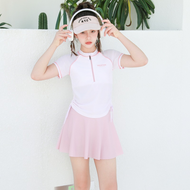 어린이 수영복 소녀 원피스 원피스 아름다운 소녀 청소년 학생 태양 보호 수영복 여성 플러스 사이즈 온천 수영복스토어 가기