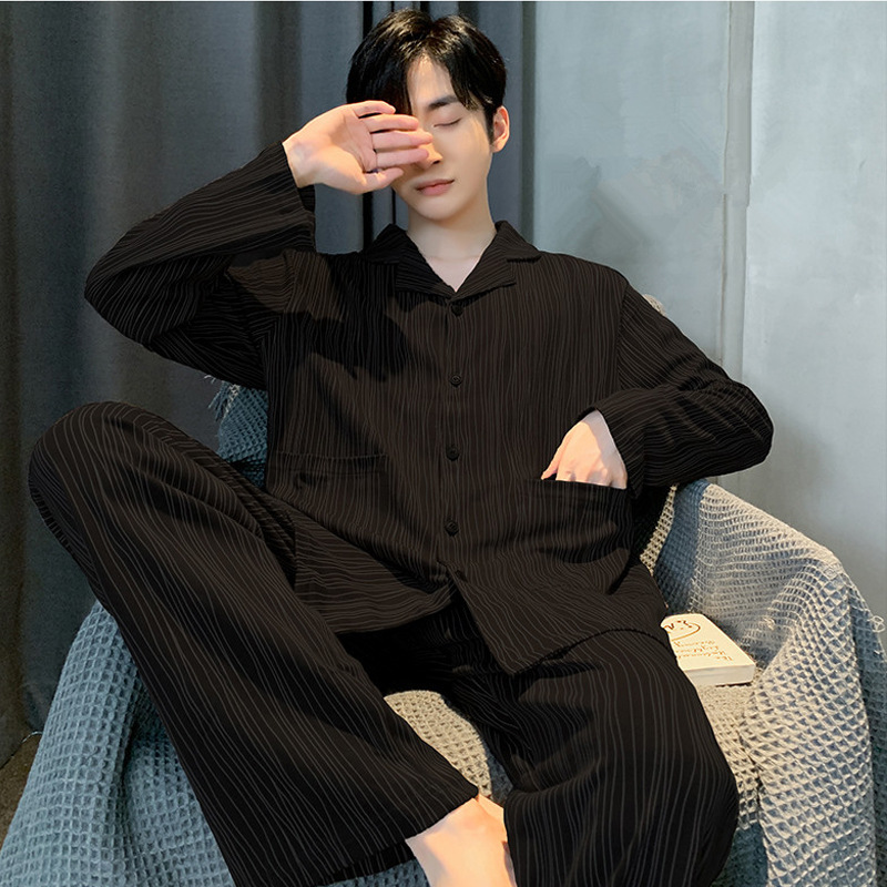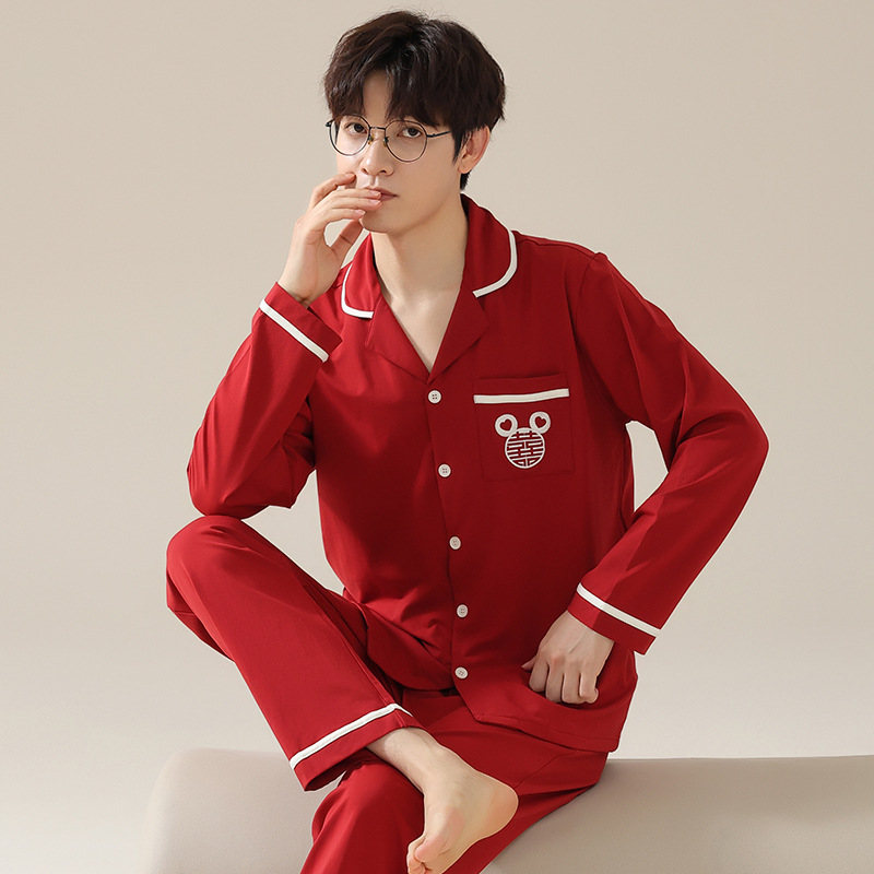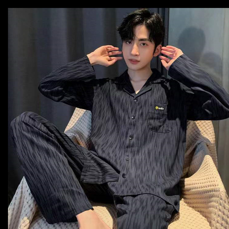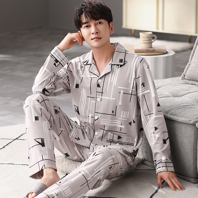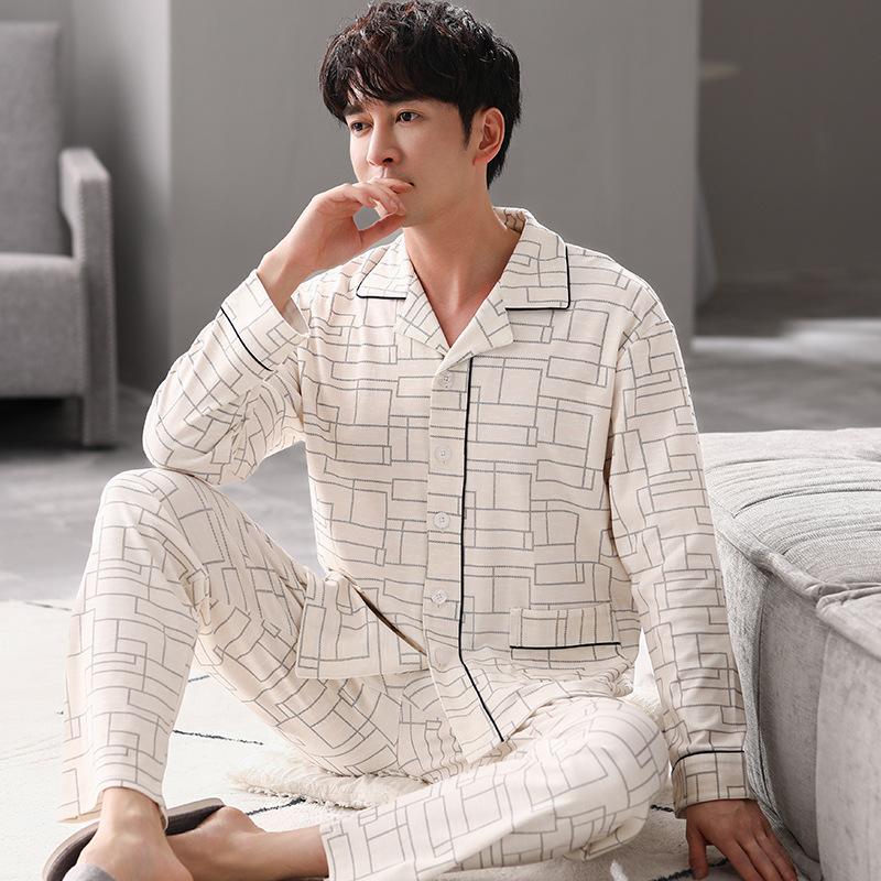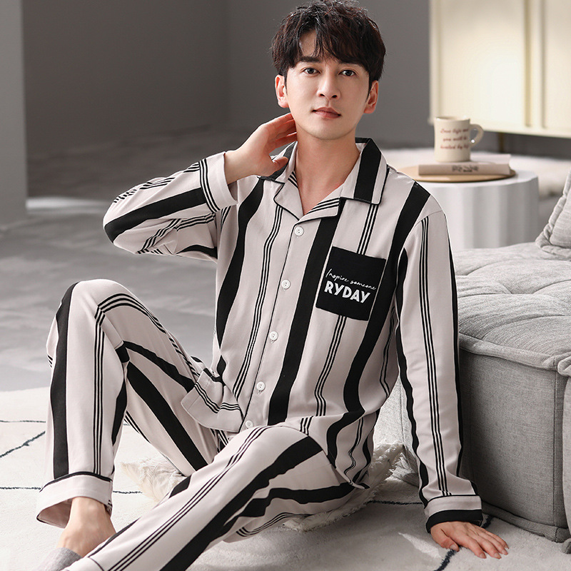 잠옷 남자 봄과 가을 100% 면화 긴팔 남성 플러스 사이즈 청소년 면화 가을과 겨울 홈웨어는 외부에서 착용 할 수 있습니다.스토어 가기