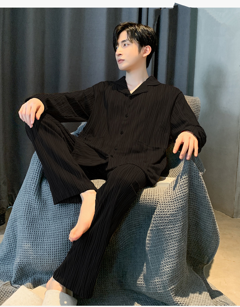 잠옷 남자 봄과 가을 100% 면화 긴팔 남성 플러스 사이즈 청소년 면화 가을과 겨울 홈웨어는 외부에서 착용 할 수 있습니다.