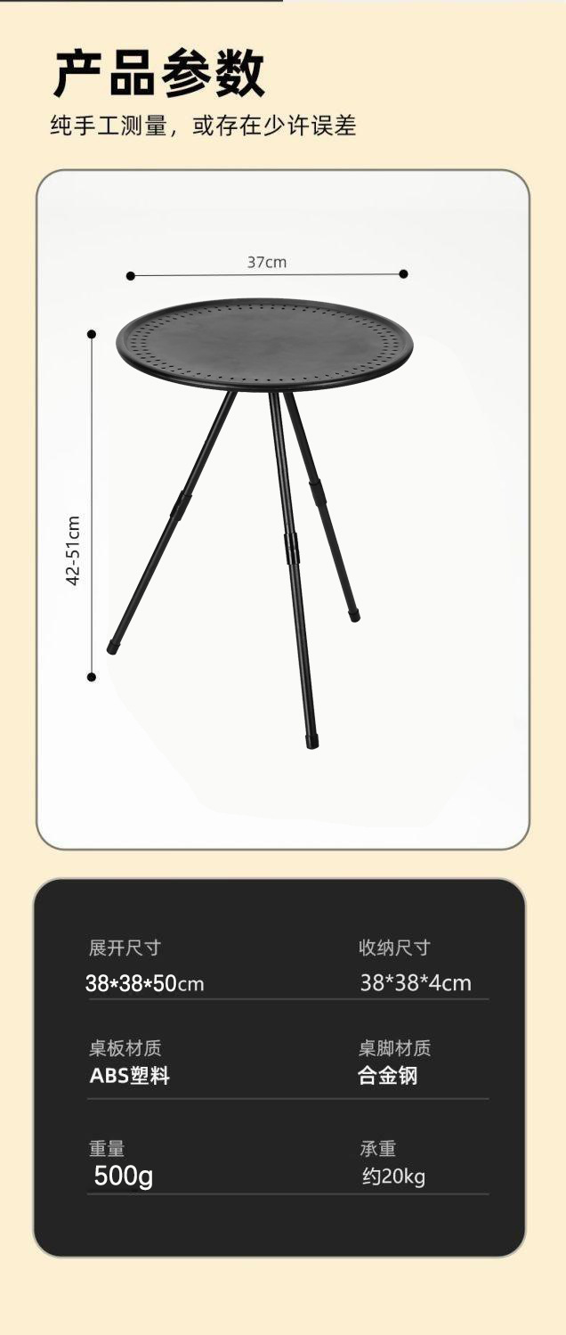 • 들어올릴 수 있는 작은 원형 테이블 [5단계 조절 + 보관 가방 없음]