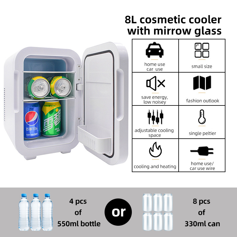 국경 간 수출 8L 뷰티 냉장고 스킨 케어 화장품 차갑고 따뜻한 이중 사용 LED 소형 자동차 냉장고 거울