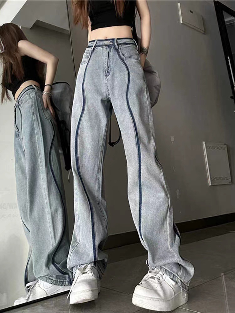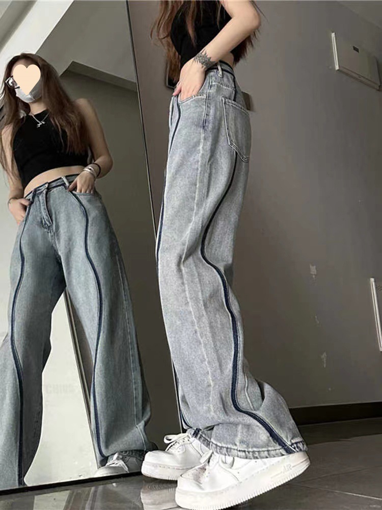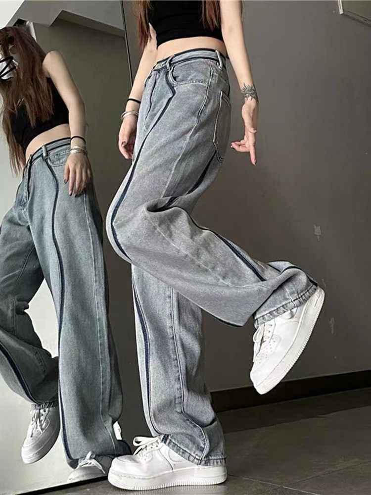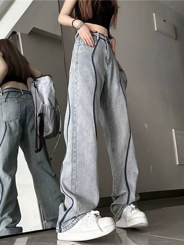 미국식 스트레이트 청바지 여성의 간단한 인터넷 유명 인사 인기 틈새 디자인 슬리밍 콜드 스타일 여성 바지 패션스토어 가기