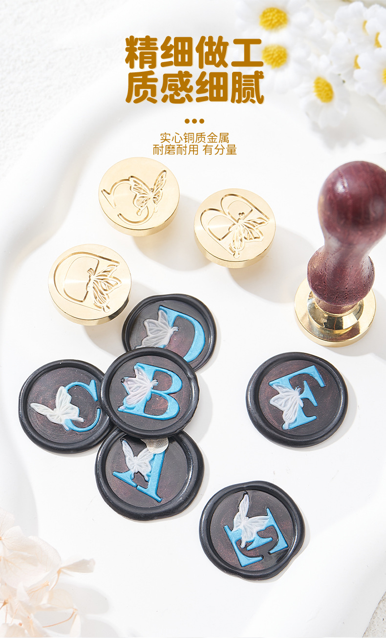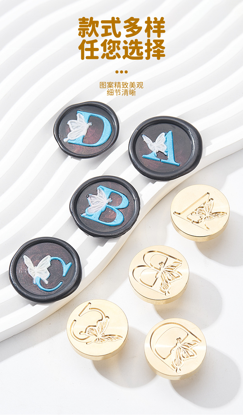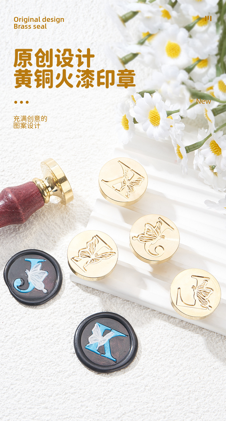 24 년 새로운 화재 페인트 씰 원래 나비 편지 시리즈 화재 페인트 황동 머리 평면 조각 공장 도매
