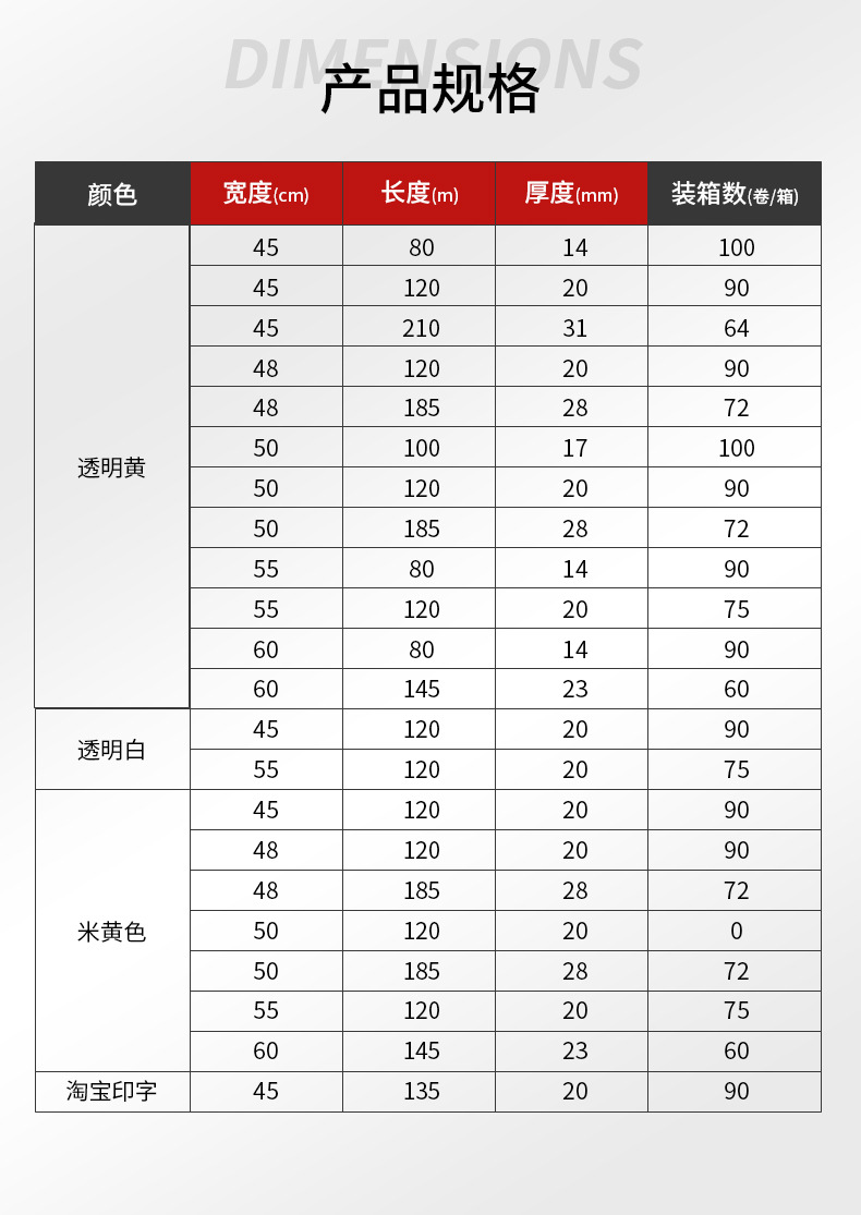 • 투명한 노란 6014; 폭 60mm * 길이 80m * 두께 14mm;90