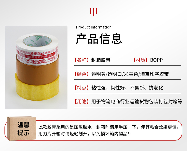 익스프레스 포장 투명 와이드 테이프 대형 롤 풀 박스 베이지 테이프 Taobao 인쇄 테이프 전자 상거래 밀봉 테이프