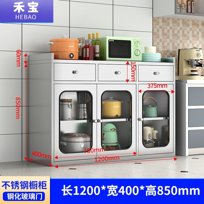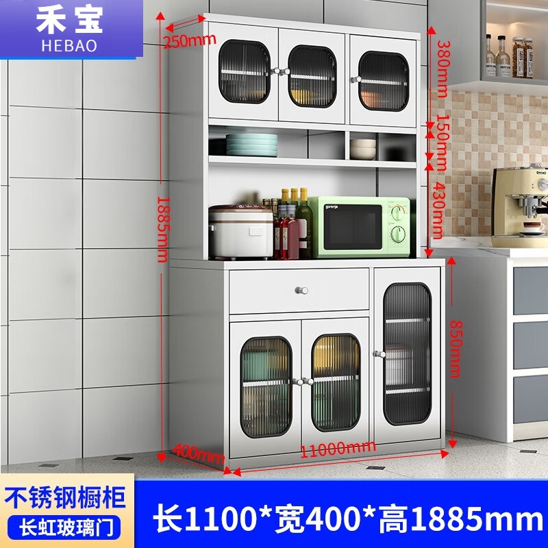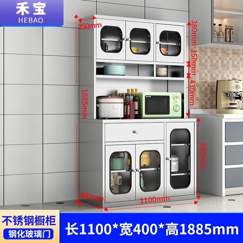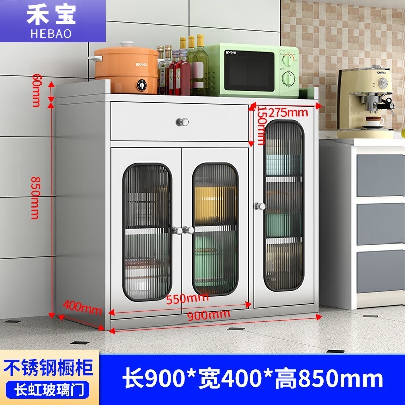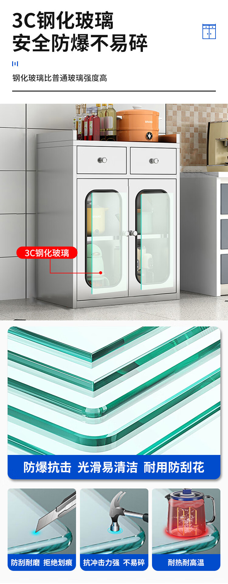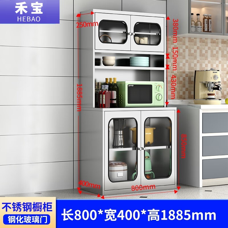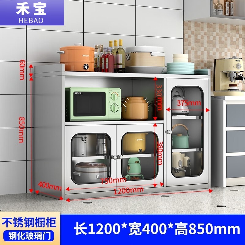 식당 탈의실 주방 보관 다층 식기 냄비 캐비닛 강화 유리 도어 스테인레스 스틸 사이드 보드 캐비닛스토어 가기